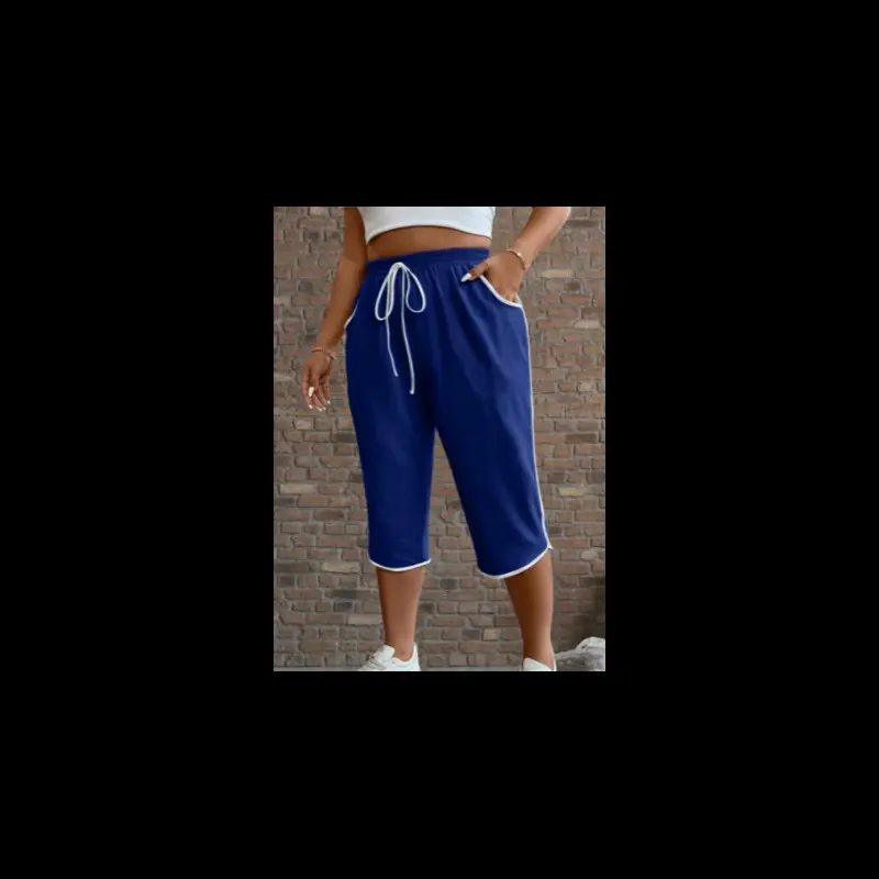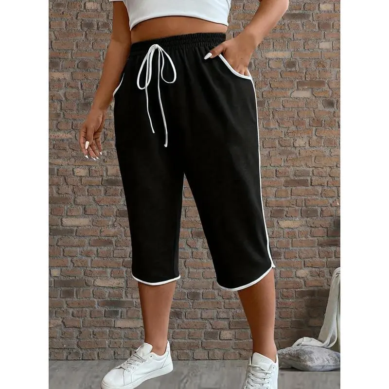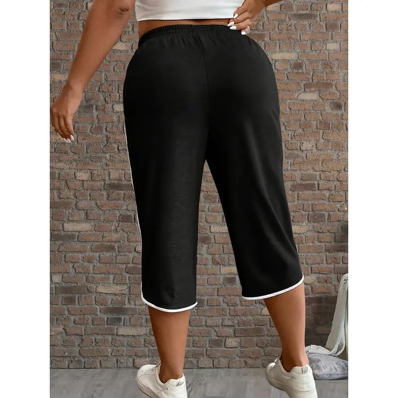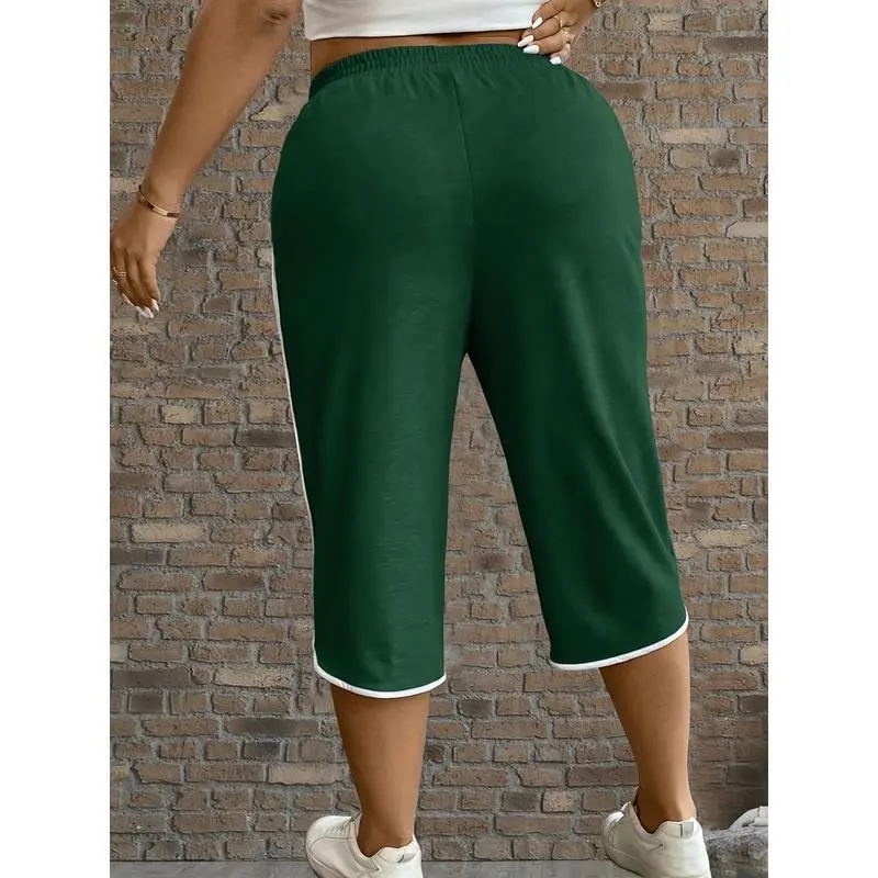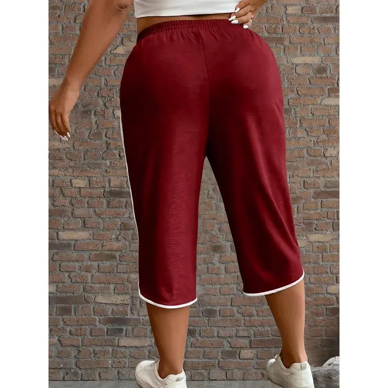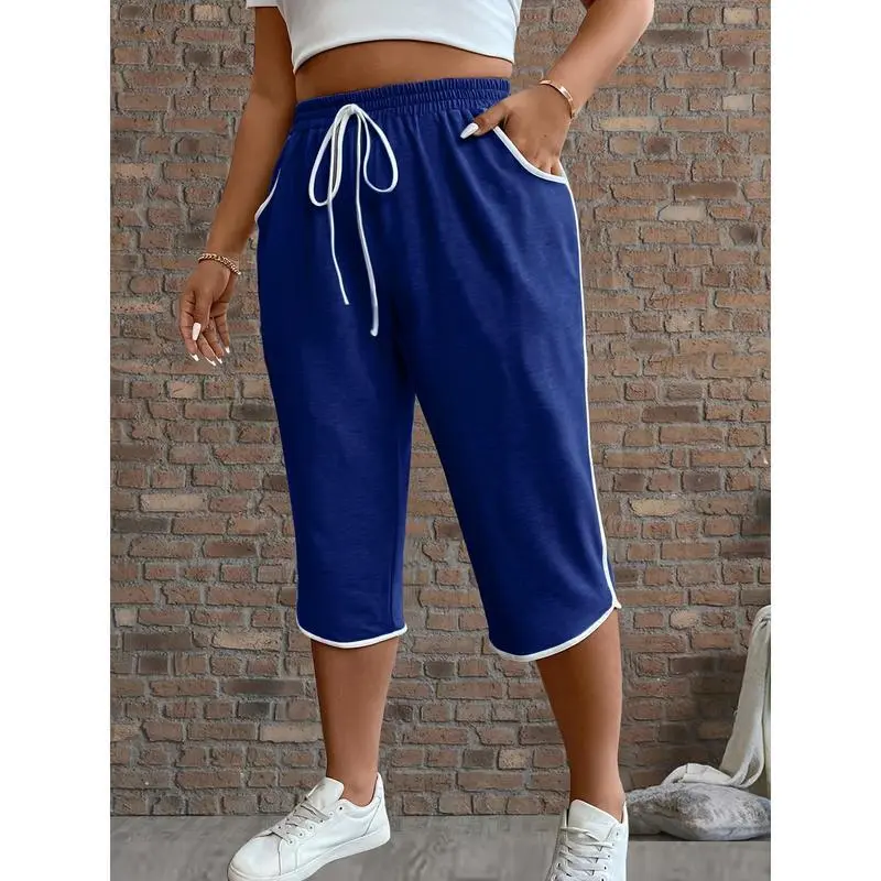 Women'sPlusSizeCasualSolidColorCapriPantswithPockets-StretchyPolyesterBlend,ElasticDrawstringWaist,MachineWashableforSpring&Fall,PlusSizePants,Spring&Fall,ElasticDrawstringWaist