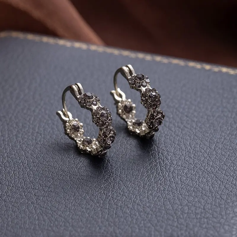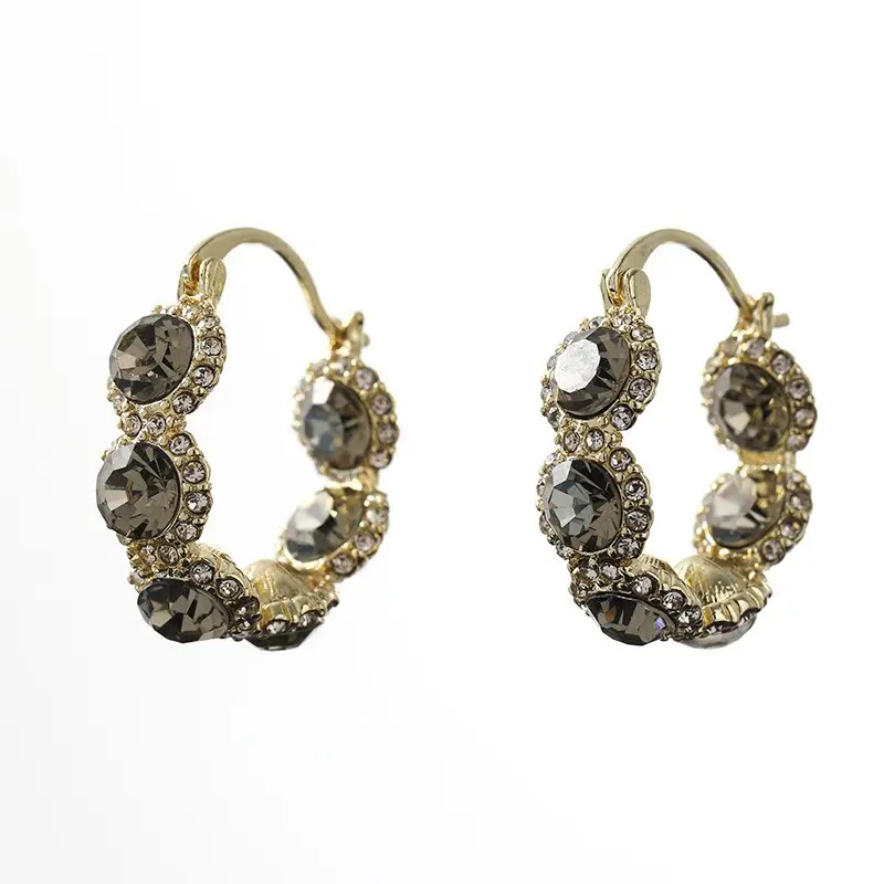 Gray diamond earrings, suitable for women, ultra-bright crystal earrings, light luxury style, elegant and fashionable earrings