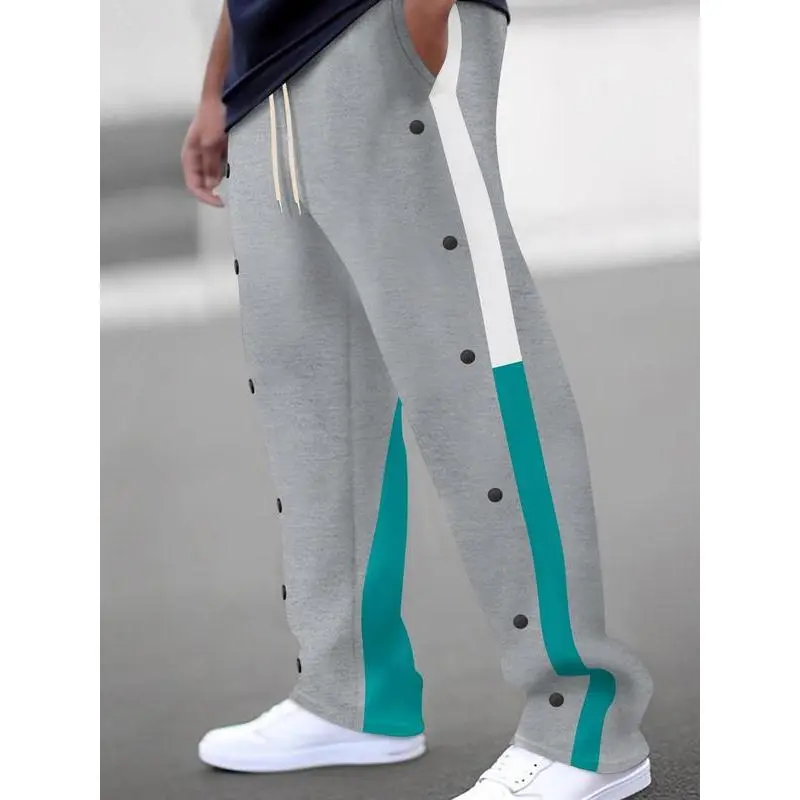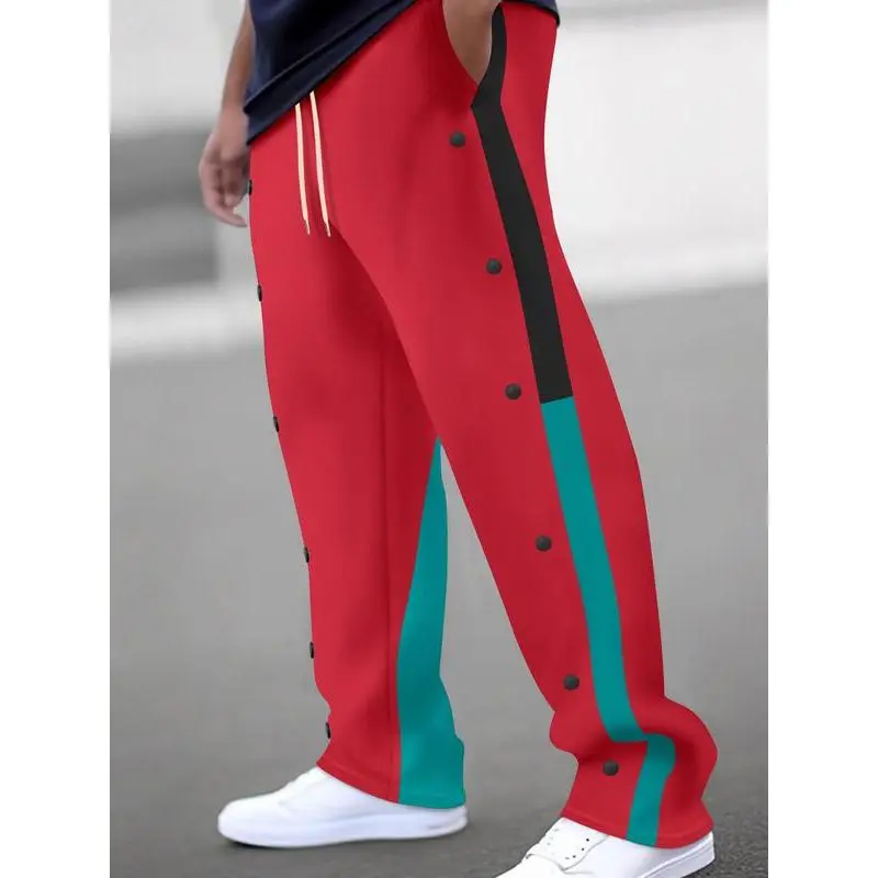 Men's Colorblock Drawstring Waist Pants, Regular Fit Casual Comfy Pocket Trousers for Daily Wear, Men's All-Match Trousers for All Seasons, Colorblock SweatpantsGift