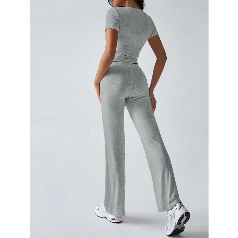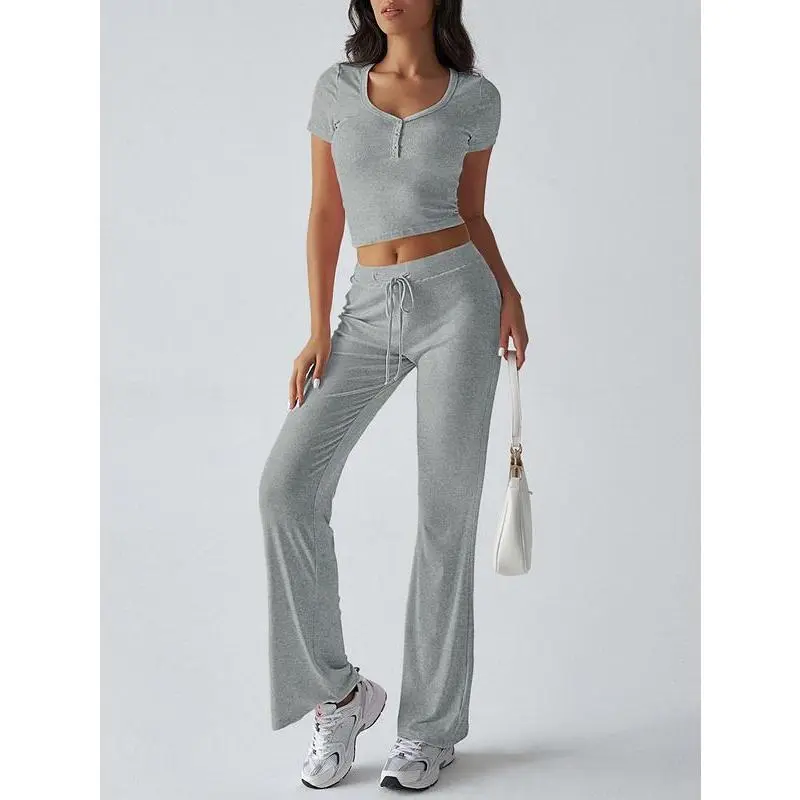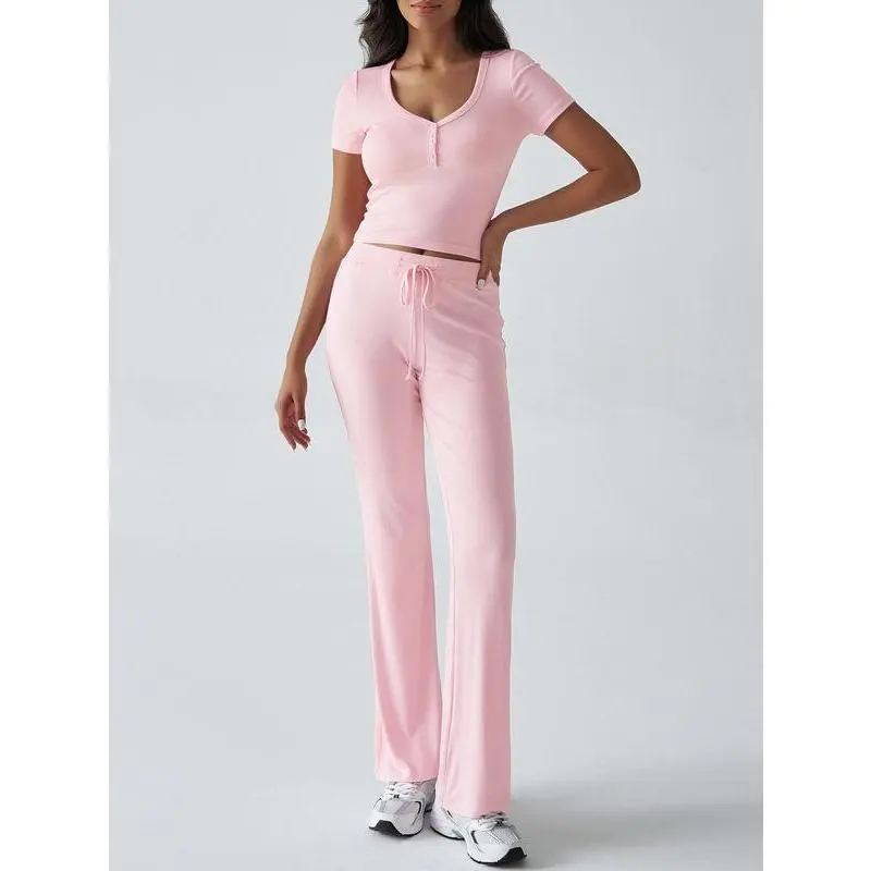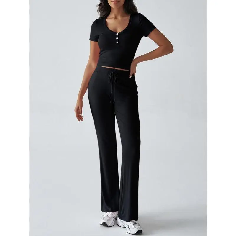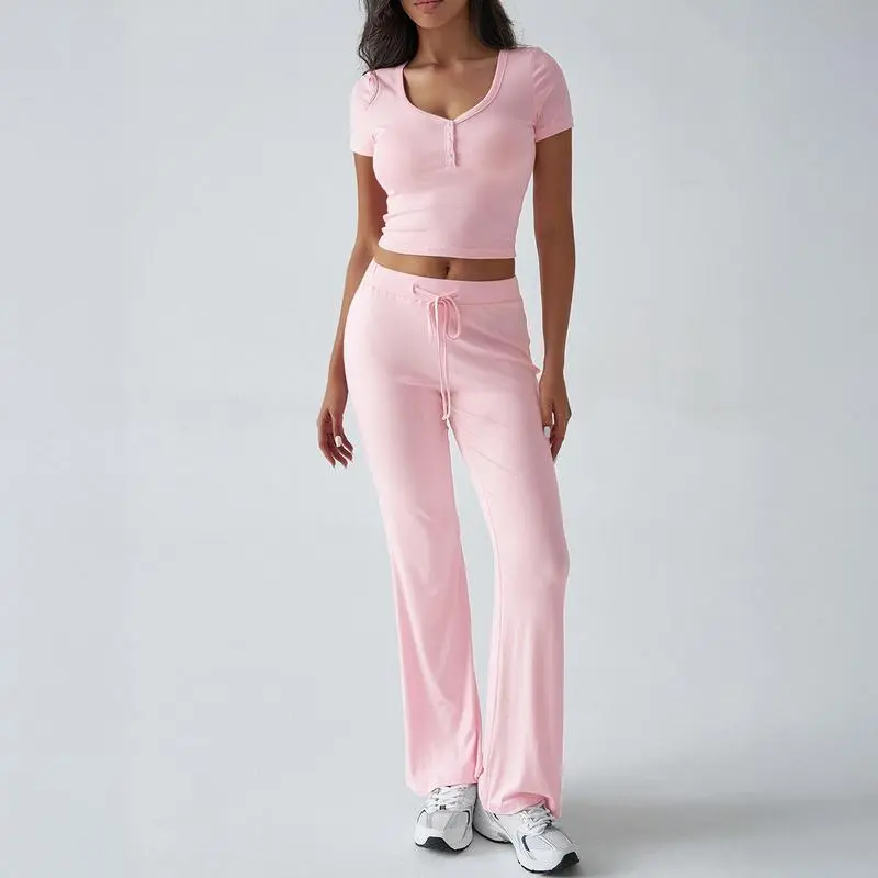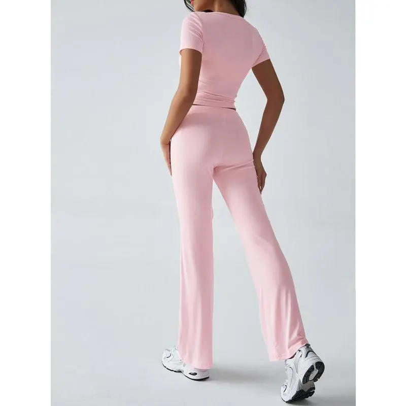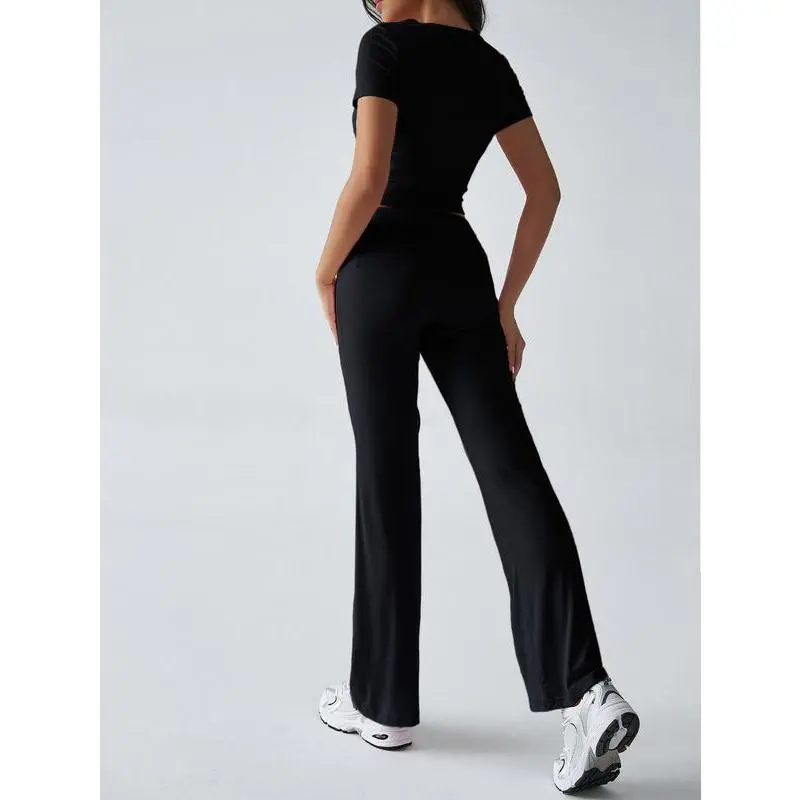 ANRABESS Women's 2 Piece Lounge Sets Fold-over Flare Pants Set Shorts Sleeve Y2K Cropped Top Casual Matching Outfits Pajamas Loungewear