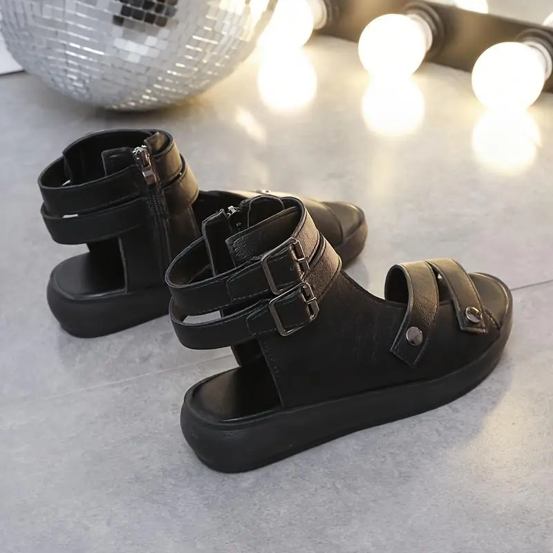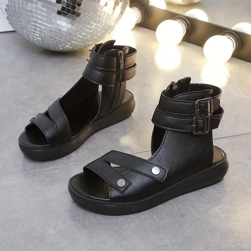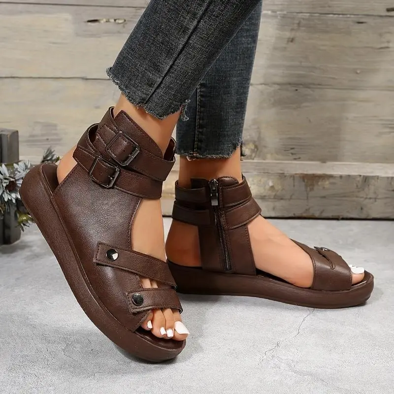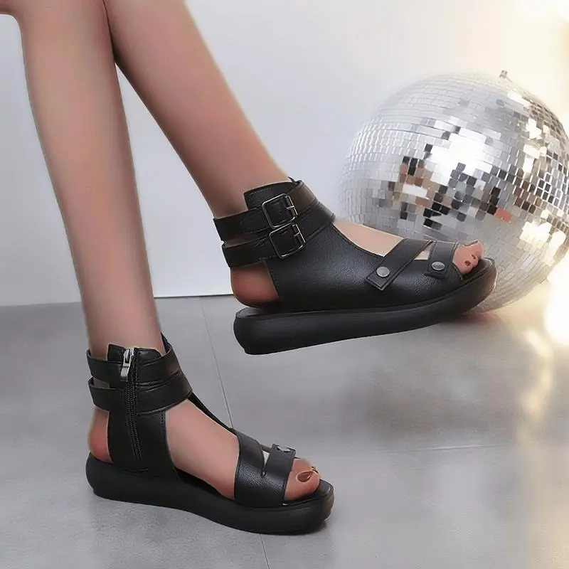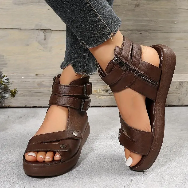 Women'sPeepToePlatformSandals,ComfyBuckleStrapSlingbackShoes,RetroOutdoorNonSlipSandals