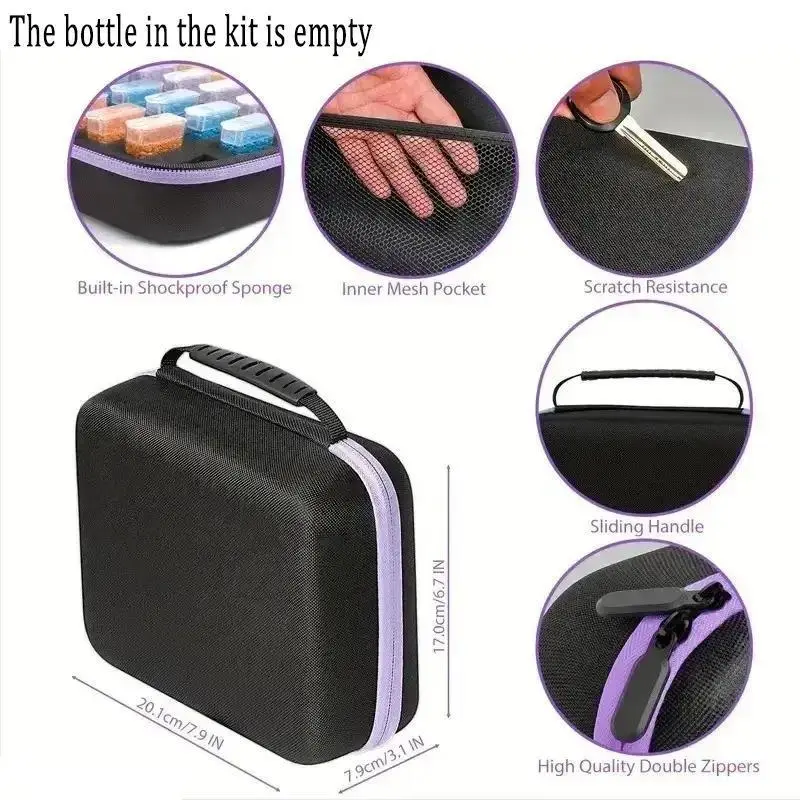 【Built-in Shockproof Sponge】: Protect your diamond painting tools from damage on the go with the storage box's built-in shockproof sponge, ensuring your tools are safeguarded during transport. 【Innovative Inner Mesh Pocket】: Keep your small tools and accessories neatly organized and within reach with the storage box's inner mesh pocket, designed to hold and organize your tiny treasures securely. 【Portable Multi-grid Design】: Effortlessly carry your diamond arts colorful painting supplies anywhere with the portable multi-grid design and convenient sliding handle of our stylish storage box. 【High-Quality Double Zippers】: Enjoy peace of mind with the storage box's high-quality double zippers, offering secure and easy access to your tools, ensuring your diamond painting experience is seamless and enjoyable. 【Multipurpose Organizational Solution】: Not just for diamond painting, this versatile storage box with its multi-grid design and scratch-resistant material is perfect for organizing a wide range of crafting supplies, making it a must-have for various DIY enthusiast.