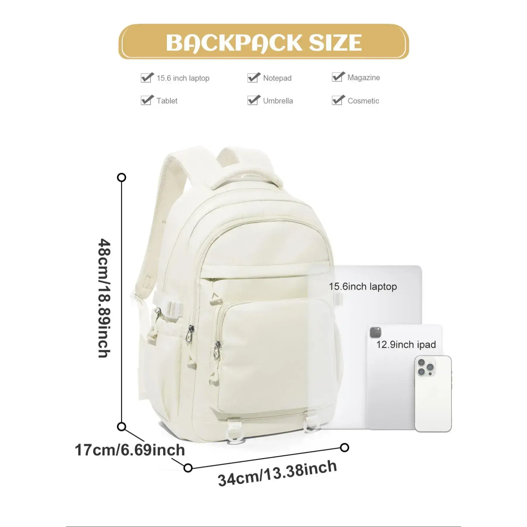 【Waterproof Shield】: Crafted from waterproof material, this backpack is your reliable companion in unexpected weather, keeping your belongings safe and dry. 【Multi-pocket Organization】: Featuring multiple pockets and compartments, it organizes your essentials efficiently, making it easy to find what you need when you need it. 【Large Capacity】: Built to accommodate your travel and school needs, it offers ample space for laptops, books, and travel essentials in a structured manner. 【Durable Build】: Designed with wear-resistant textile, this backpack stands up to daily use and adventures, ensuring longevity and sustained appearance. 【Adjustable Comfort】: Adjustable straps provide tailored comfort for your shoulders, making it suitable for long wear, whether you're commuting or exploring.