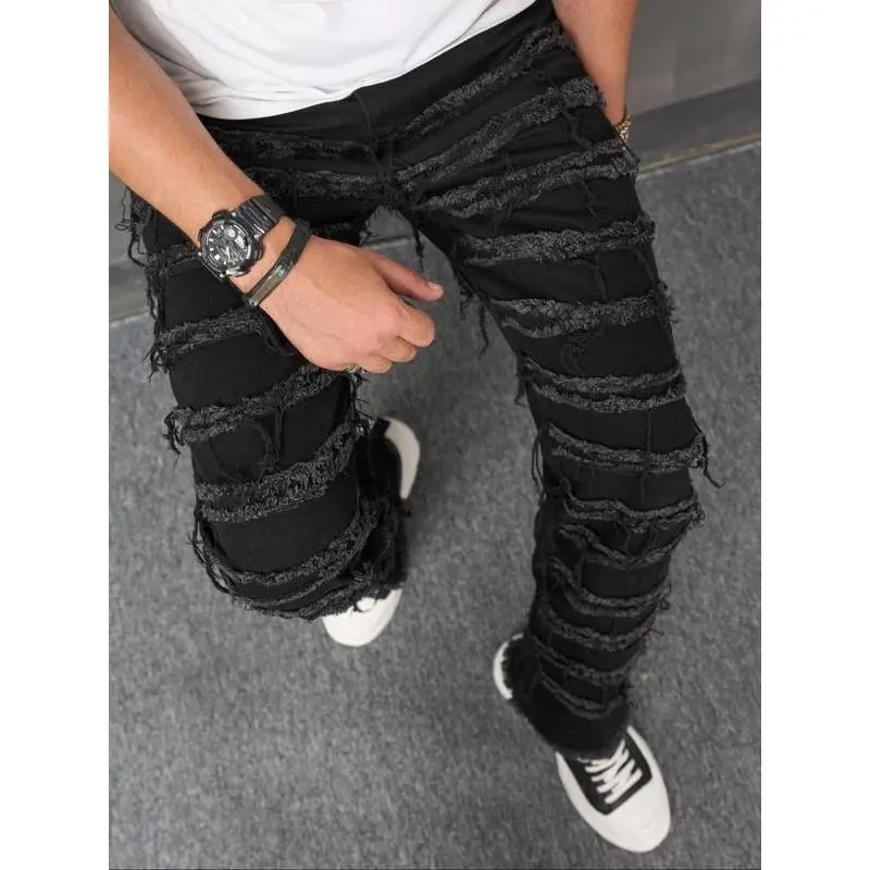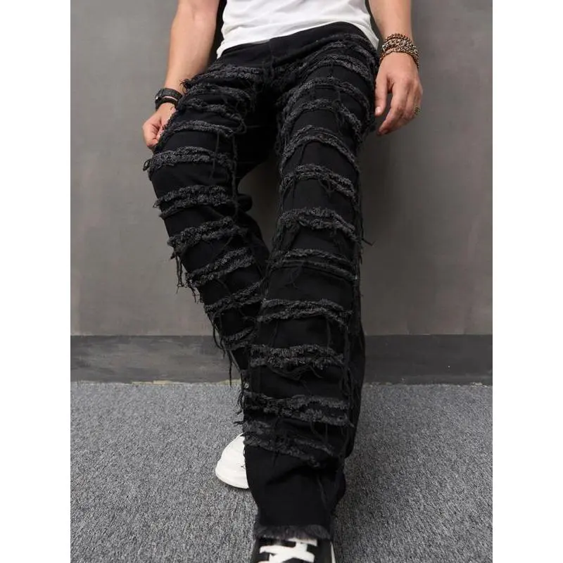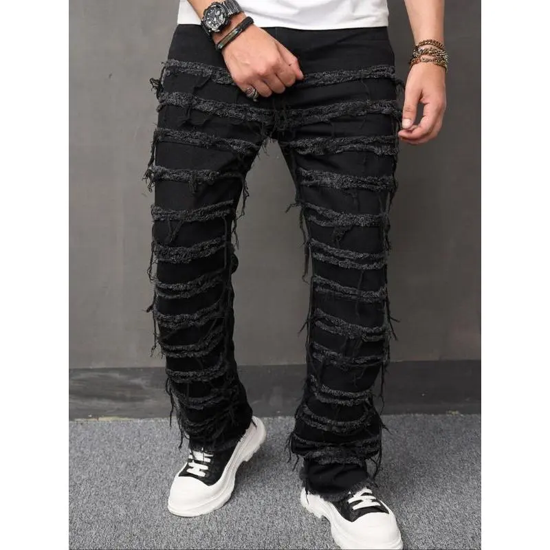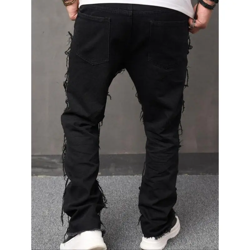 ��Ripped Detail��: Featuring expertly crafted ripped sections, these jeans provide a contemporary edge, distinguishing them from standard denim offerings in the market. ��Functional Pockets��: Equipped with multiple pockets, these jeans offer practicality for your daily essentials. They enhance usability without sacrificing aesthetic appeal. ��Button Fly Closure��: The button fly ensures a secure fit while adding a classic touch, enhancing the overall look and functionality of the trousers.