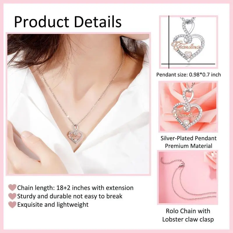 Gifts Necklace for Grandma/Nana/Mom, Infinity Love Heart Necklace Birthday Mother's Day Jewelry Gifts for Women