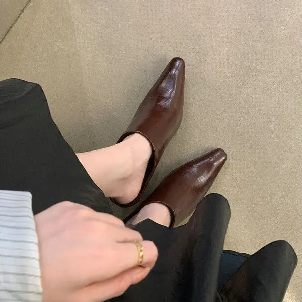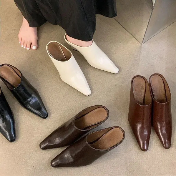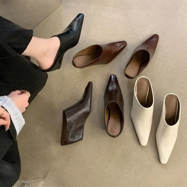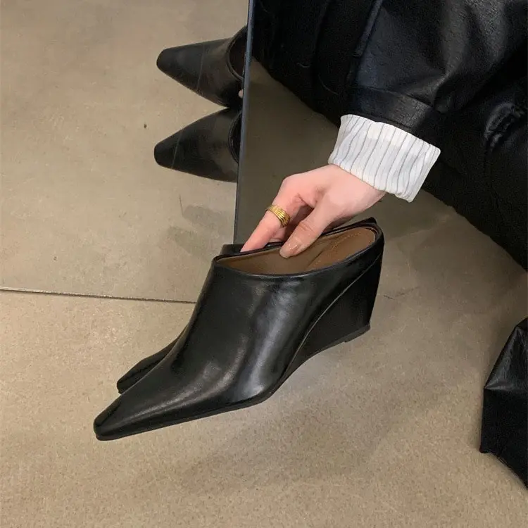 Women's Elegant Leather-Look Wedge Heel Backless Slides - Comfortable Height for Commuting & Formal Occasions