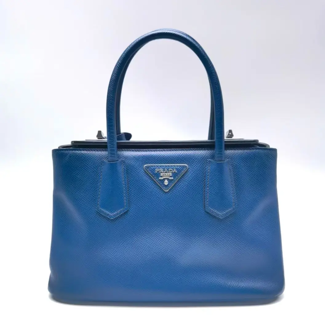 Pre-owned PRADA leather Shoulder Bags Galleria Blue Calfskin Logo Cross Pattern Clutch Bag, Shoulder Bag and Handbag