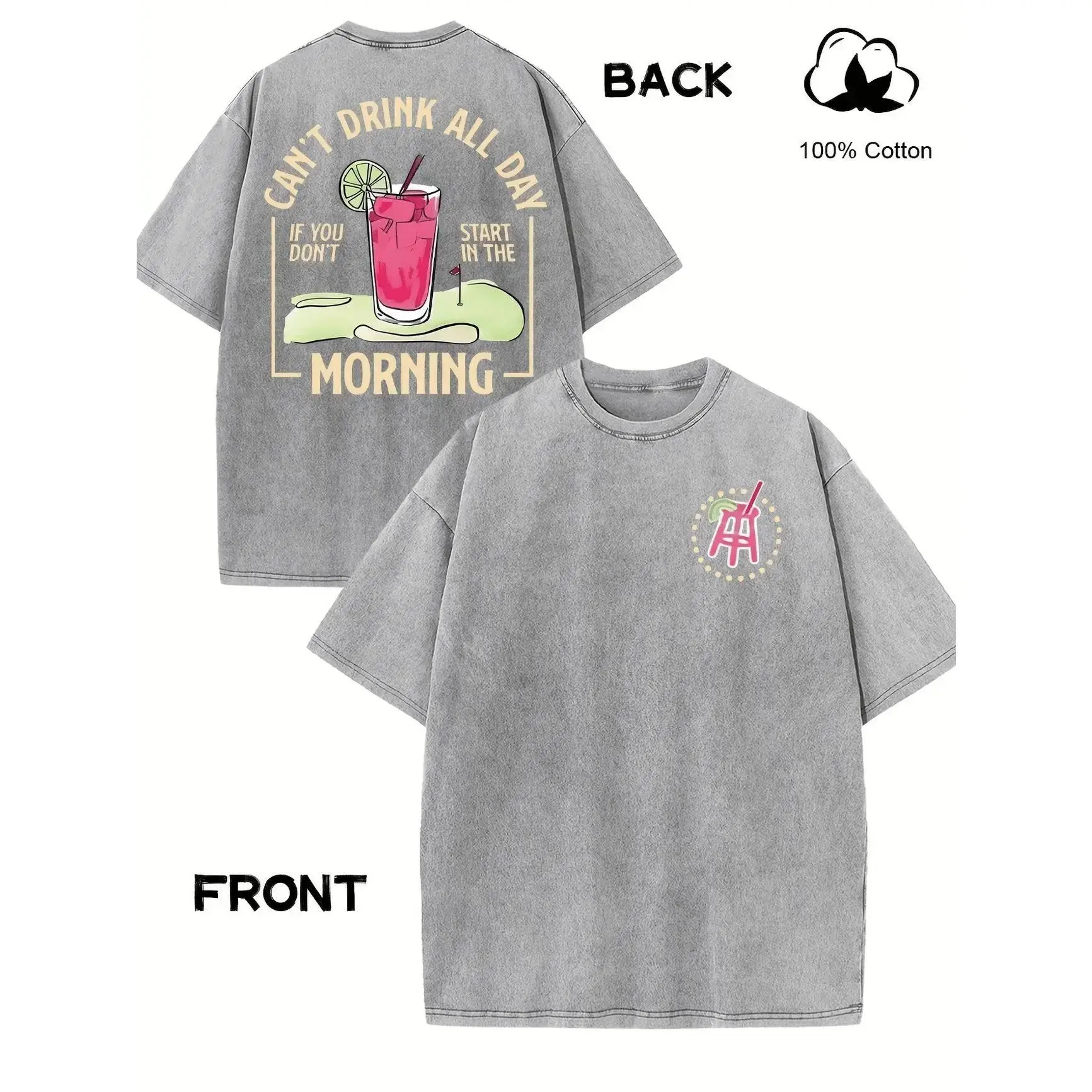 Can't Drink All Day Graphic Y2K Retro Double Sided Pure Cotton Loose Casual Men Black Tee Menswear Streetwear