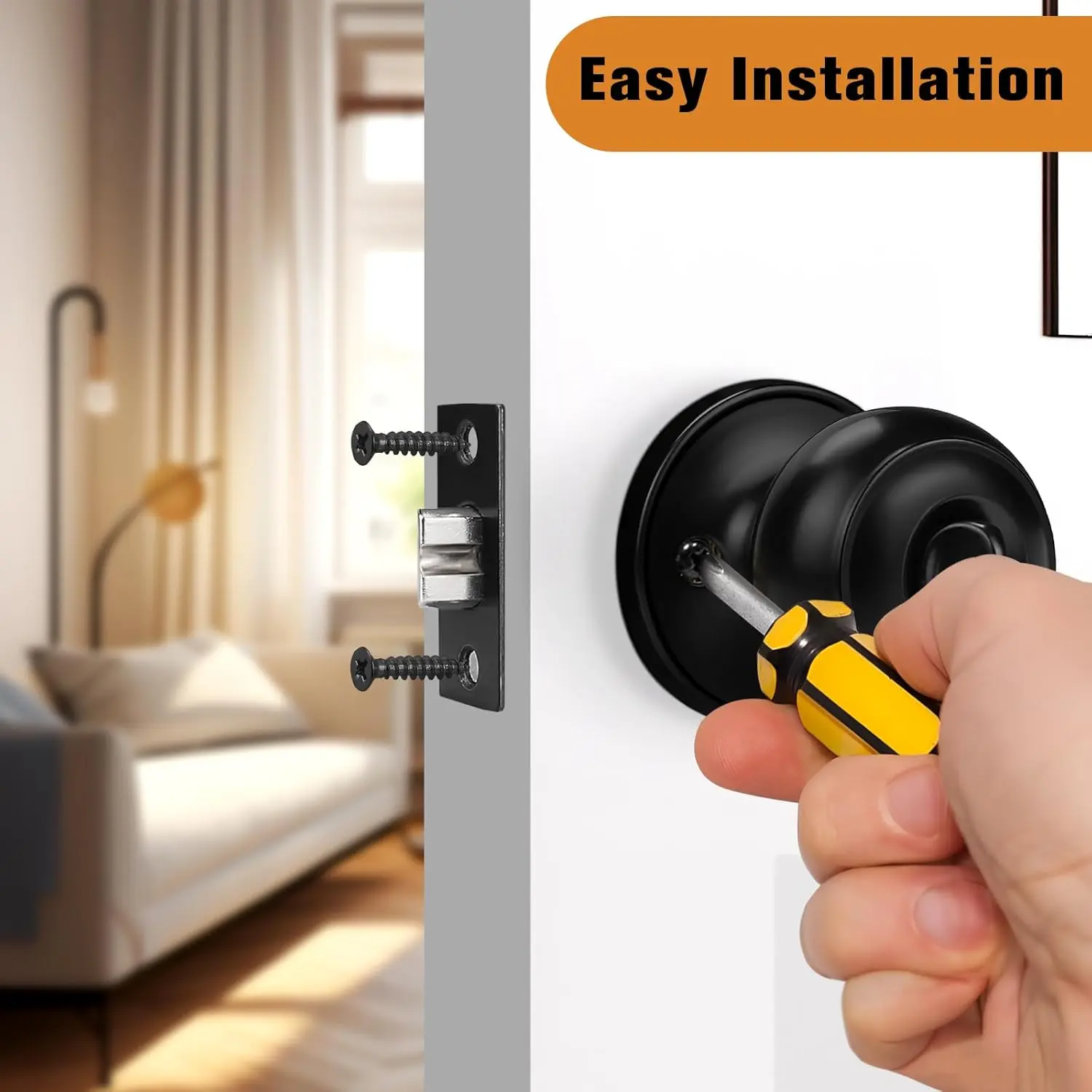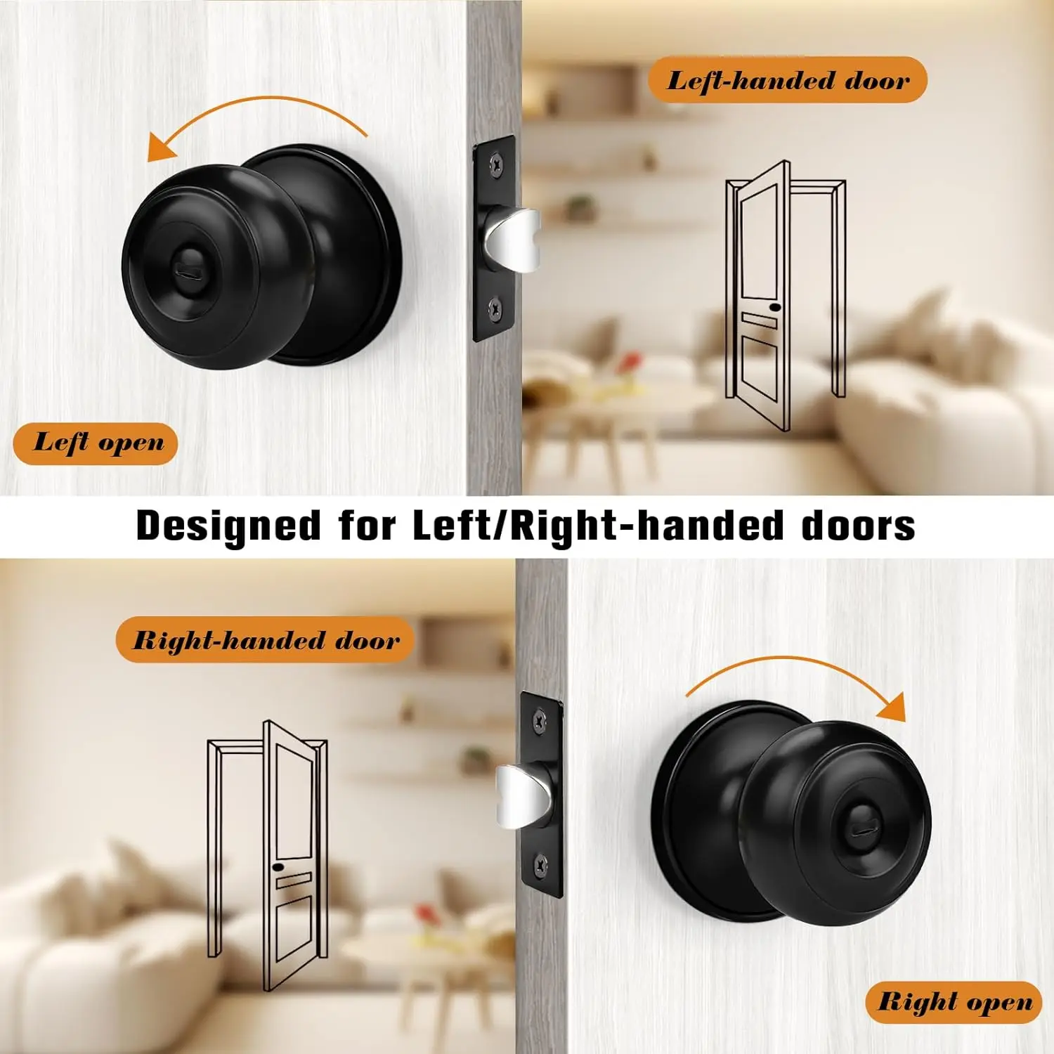 Black Door Knobs, Privacy Door Knob for Bathroom Bedroom, Interior Door Knob with Thumb Turning Locking Button, 10 Pack