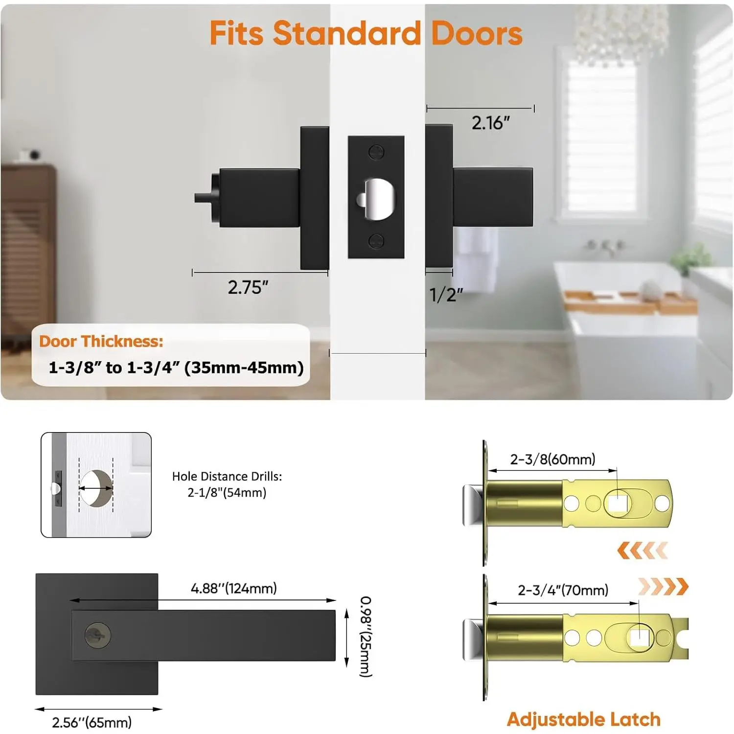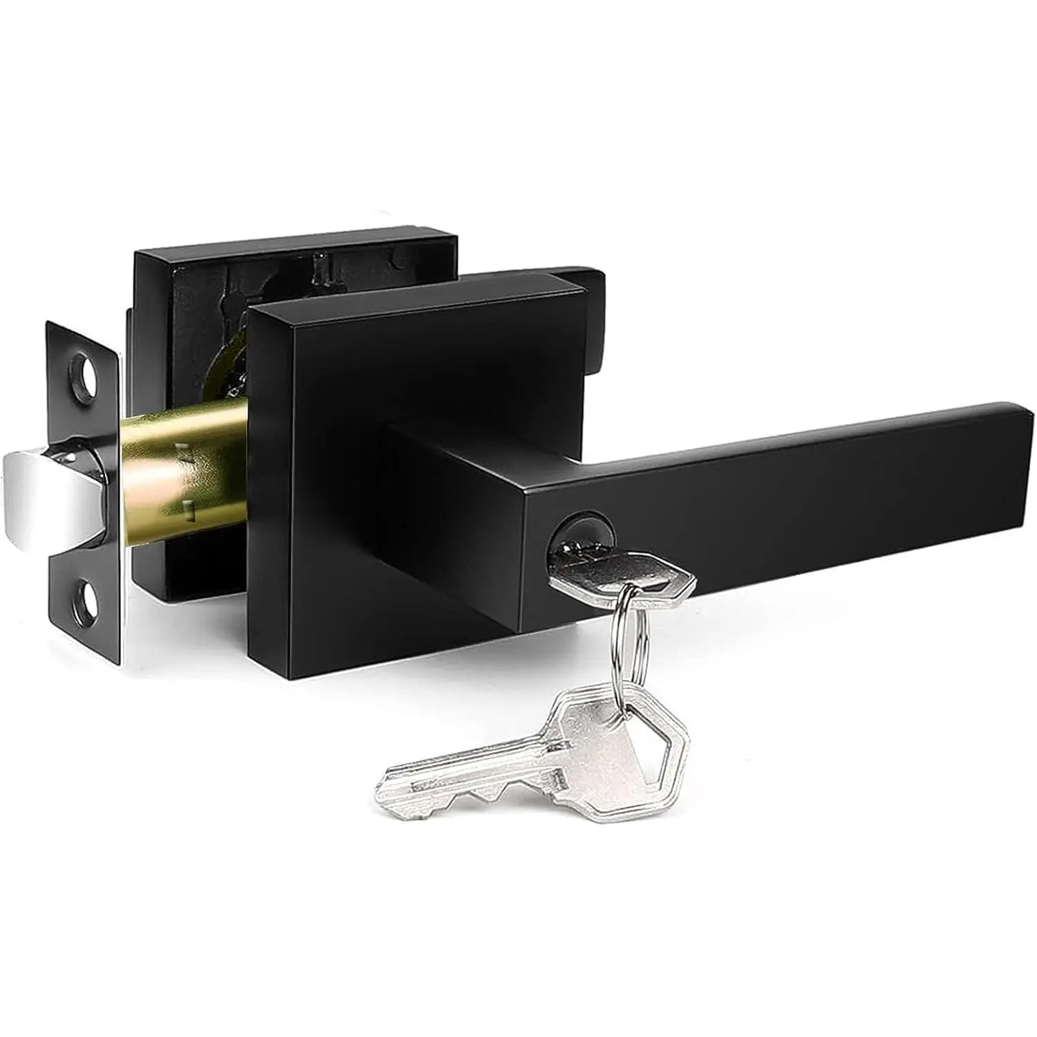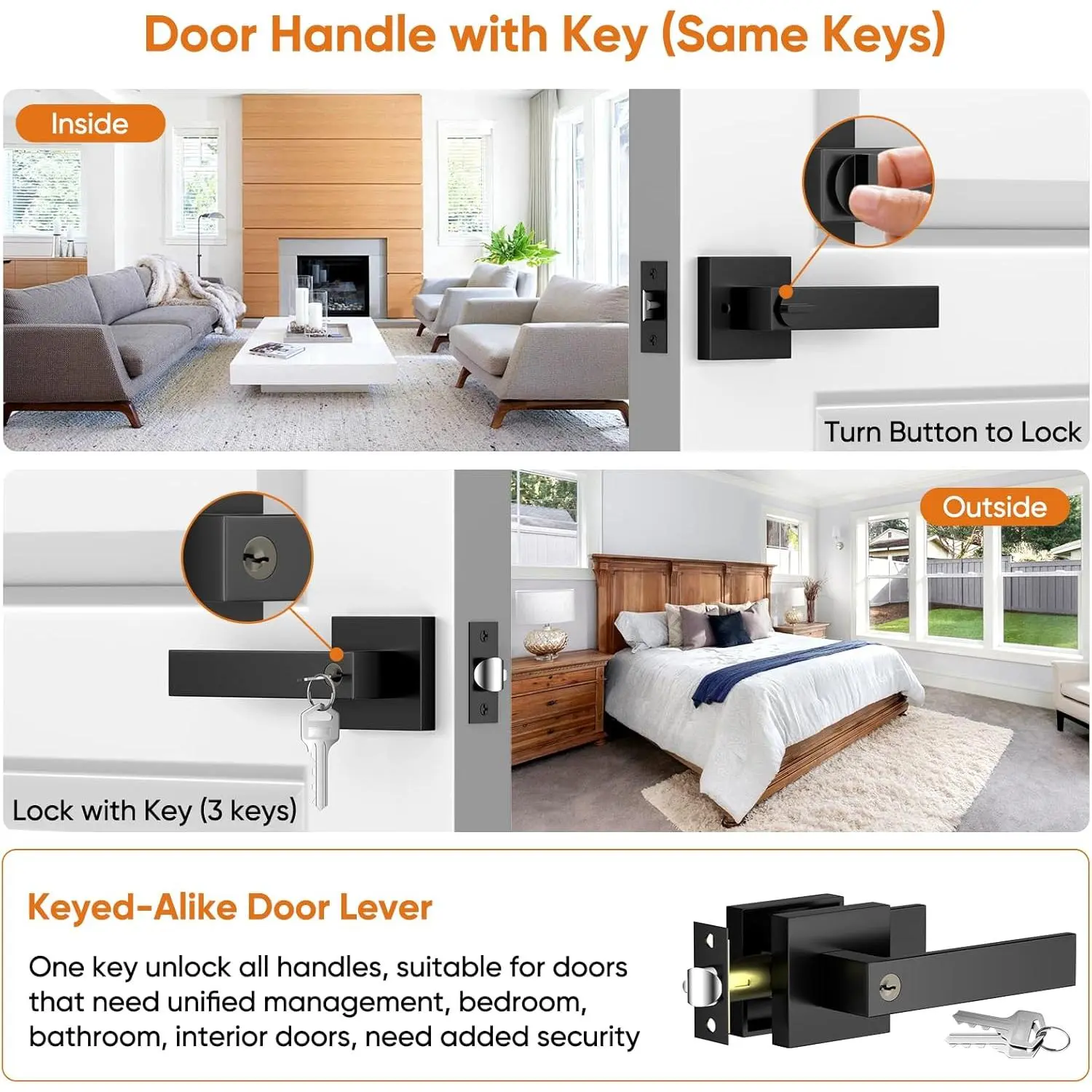 Door Handles Interior, Door Knobs Interior, Black Door Handle with Reversible Lever, Keyed Alike Door Lock Sets for Bedroom, 5 Packs Heavy Duty Door Lock Sets, Matte Black