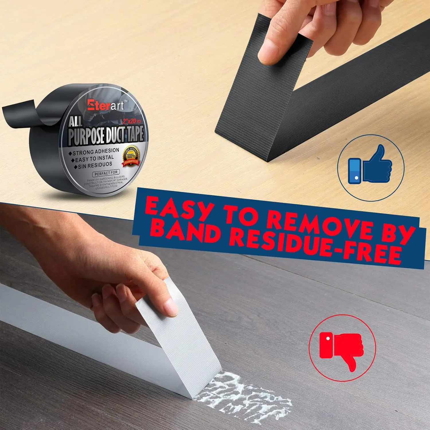 Duct Tape Haevy Duty Strong Industrial Max Strength Tape, No Residue and Tear by Hand, Multi-Purpose, Indoor & Outdoor Use, 2 Inch x 20 Yards (Black)