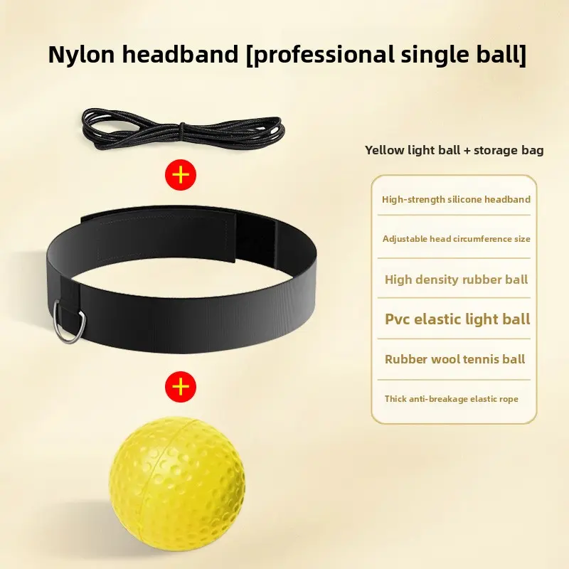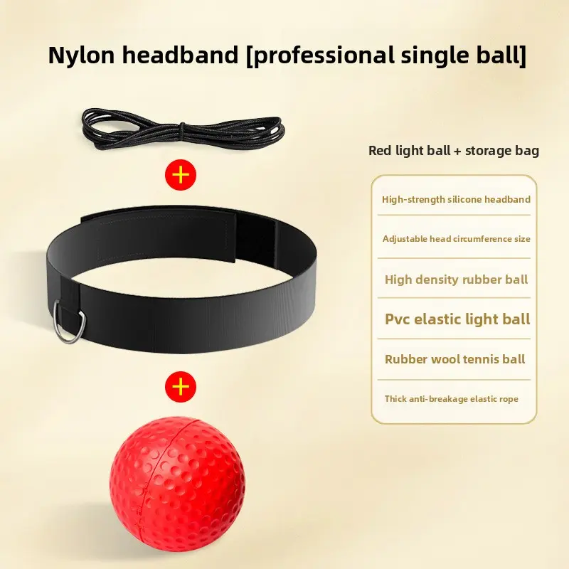 This is a portable head‑worn boxing reaction ball designed for high‑speed agility and reflex training. It features six core training modes to enhance body coordination and reaction speed. Constructed with eco‑friendly, skin‑friendly materials, it is soft on the hands yet durable. The elastic cord is thickened and highly resilient to prevent breakage, while the training balls come in different types for varied exercises. Breathable and sweat‑absorbent, it keeps you dry and comfortable during intense workouts. Compact and easy to use, it offers a convenient way to improve boxing reflexes and overall agility.