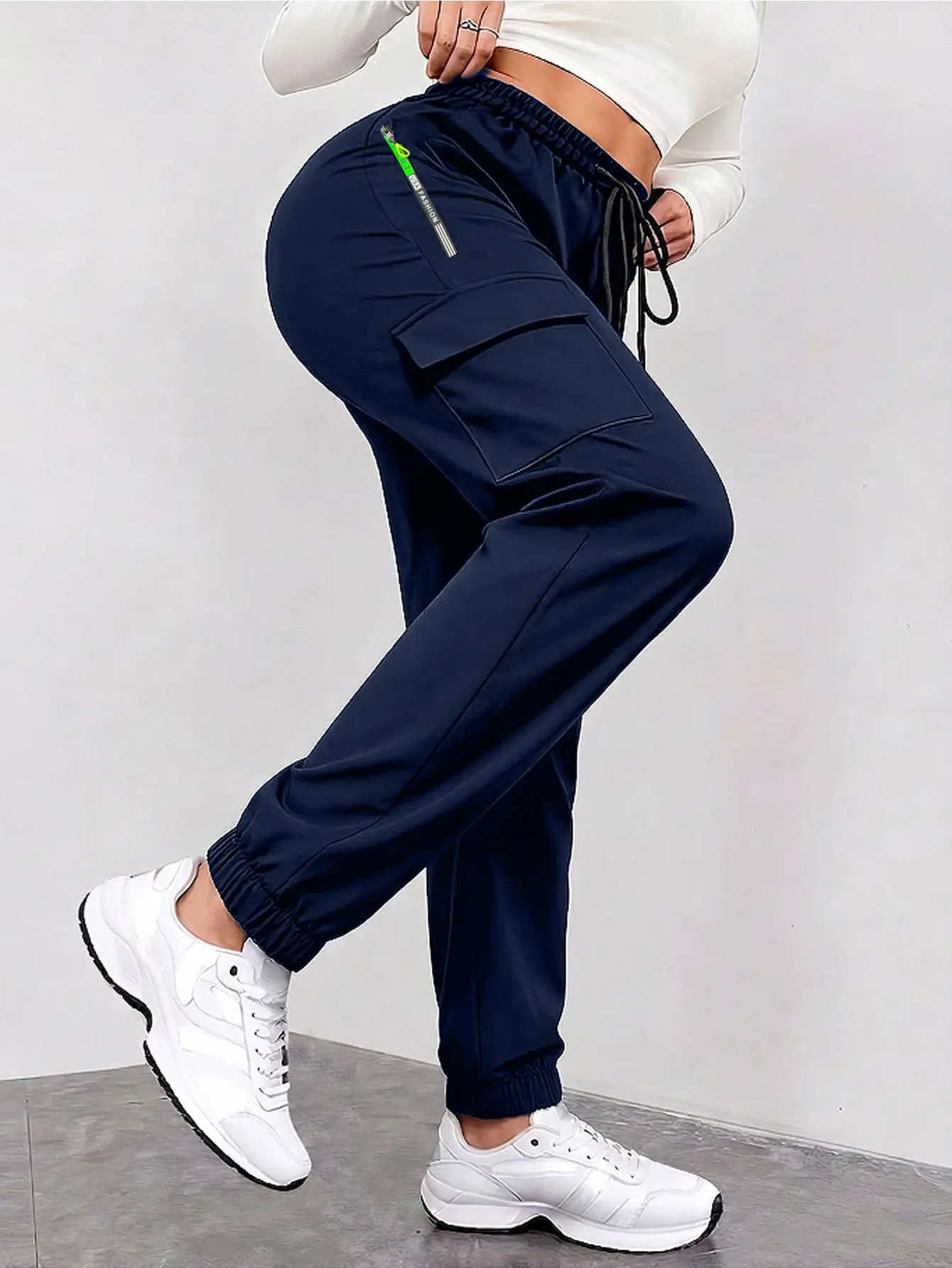 Women’s cargo jogger pants with zippered pockets for spring/summer, available in 1-pack or 3-pack. Featuring a fashionable large pocket design and an elastic waistband with an elastic drawstring waist, these are slim-fit long pants suitable for casual out