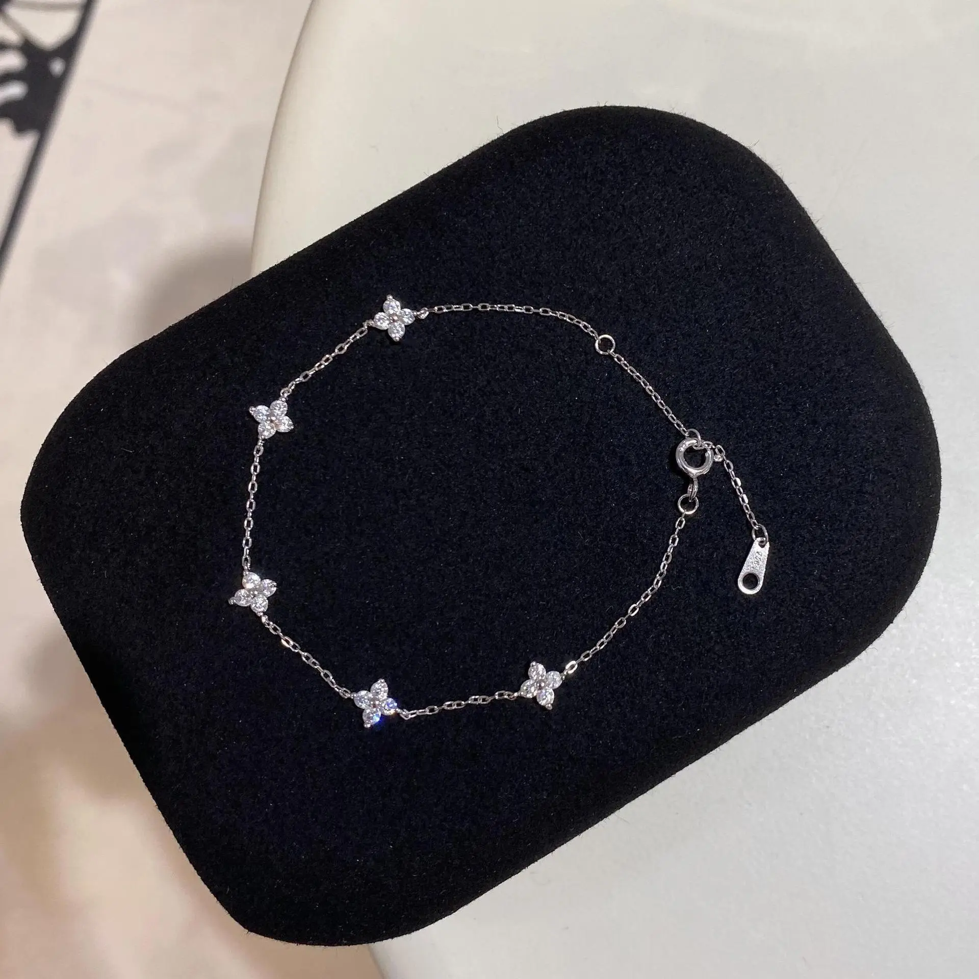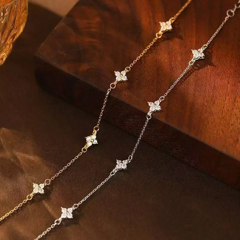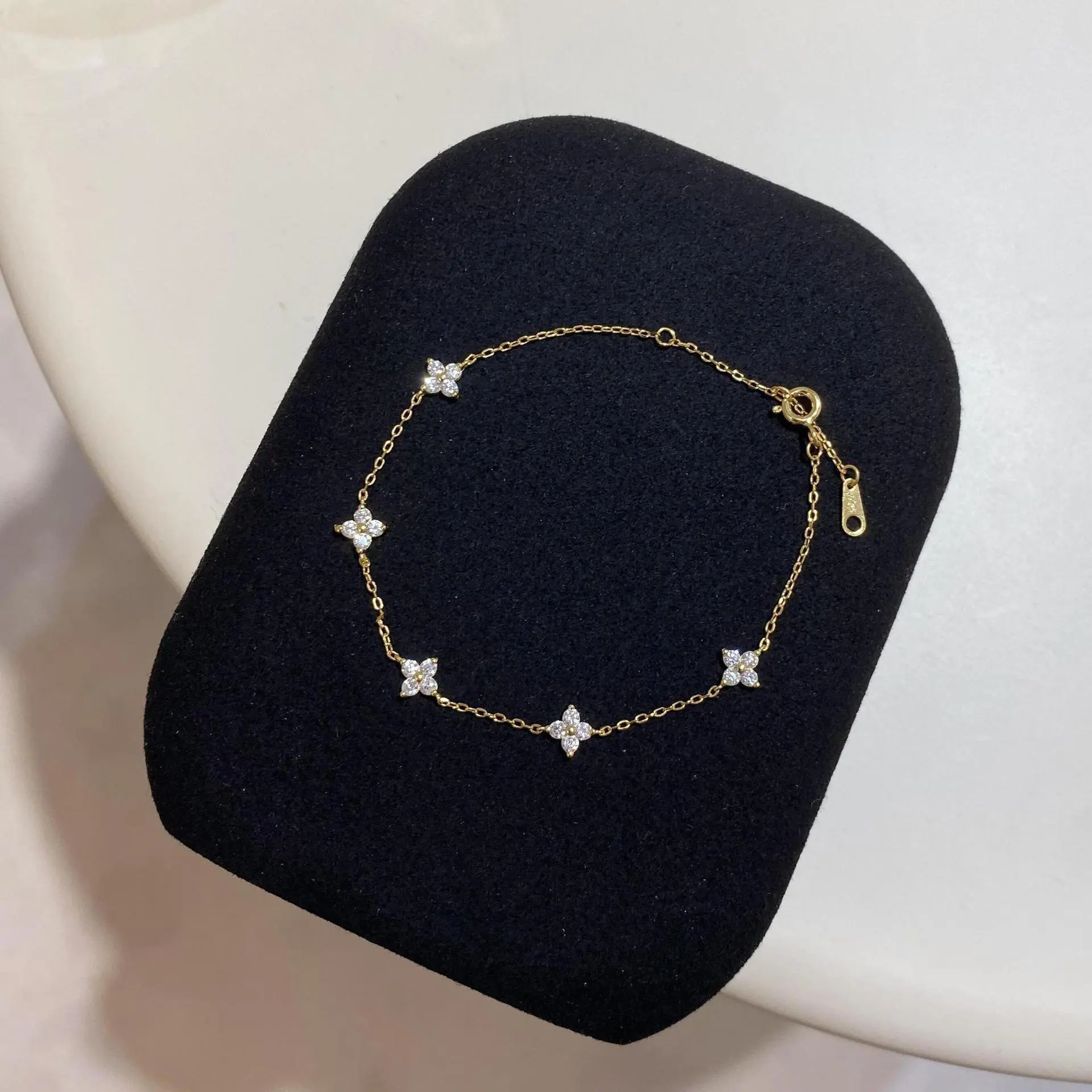 Gold-colored five-petal four-leaf flower design cubic zirconia bracelet, elegant women's jewelry, a perfect gift for special occasions