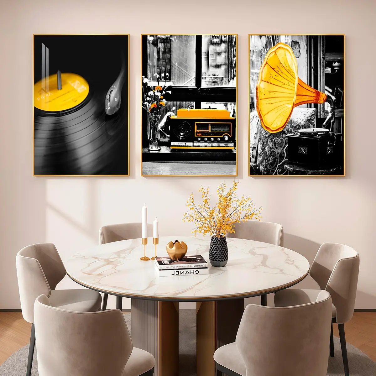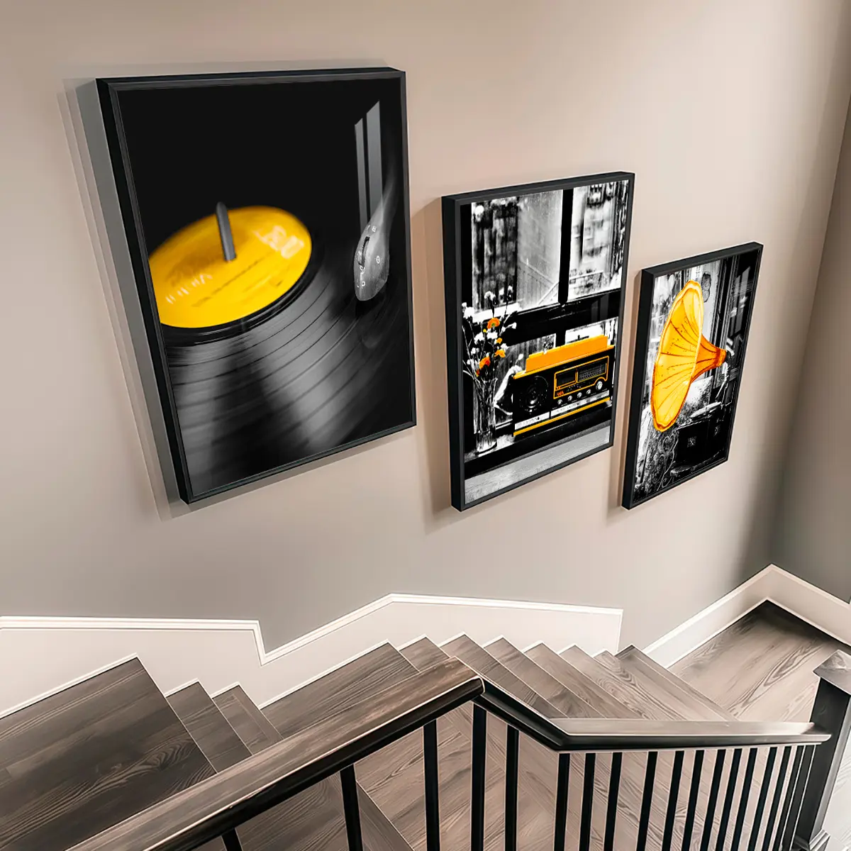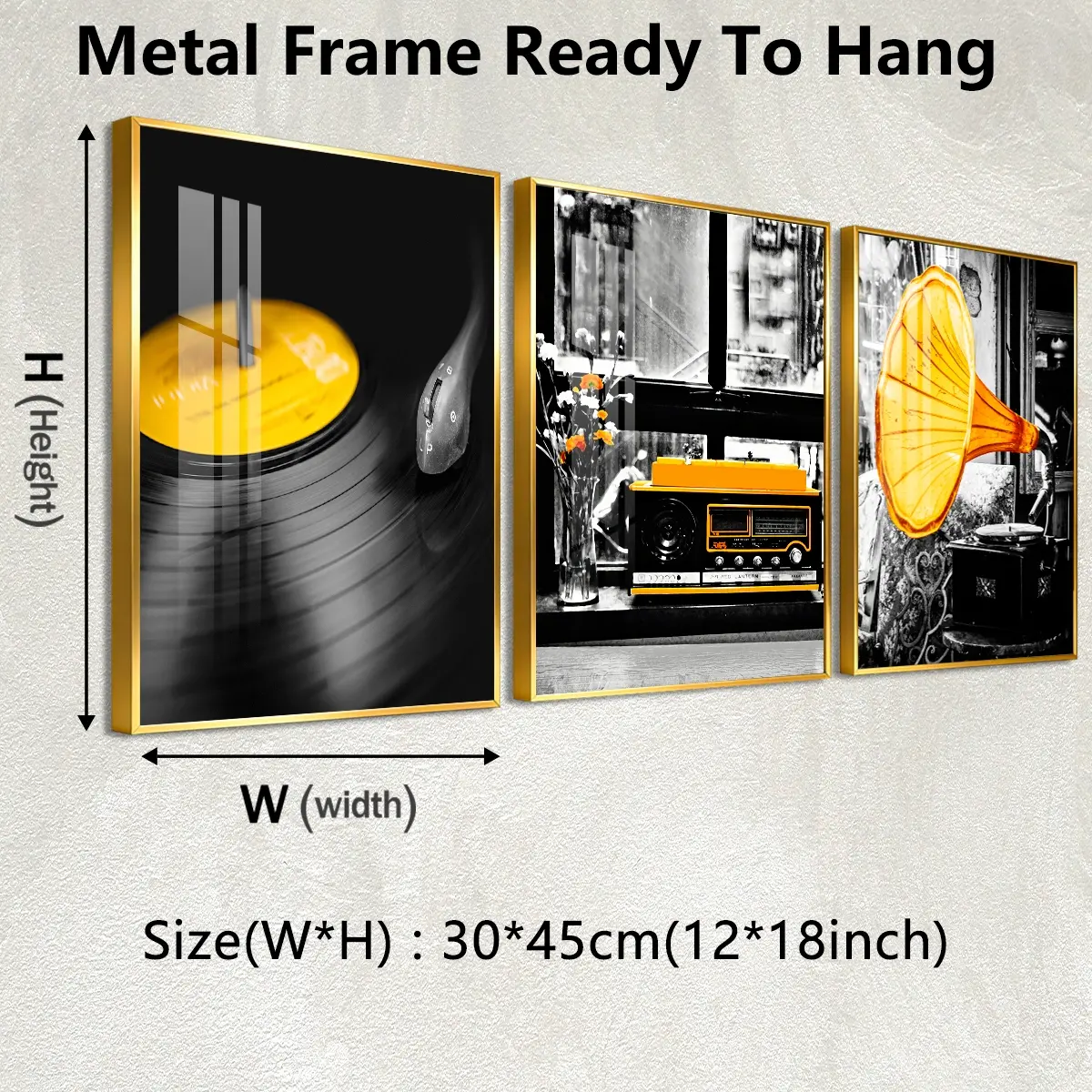 3 Counts Aluminum Alloy Framed Painting, Retro Vinyl Record Radio And Gramophone Pictures, Home Decoration For Living Room, Bedroom, Office, Restaurant, Hallway Wall Decor, Odorless Print Artwork, Luxury Perfect Gift For Friends And Family