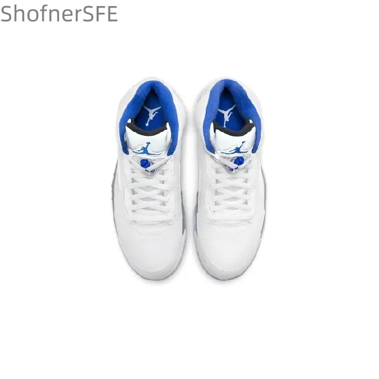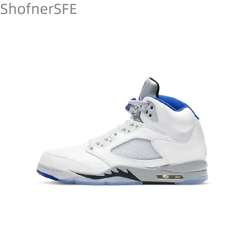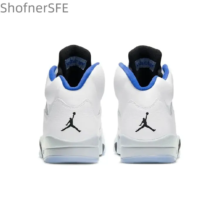 ShofnerSFE White and Blue Retro Anti-Slip Wear-Resistant Basketball Shoes for Men Comfortable and Durable