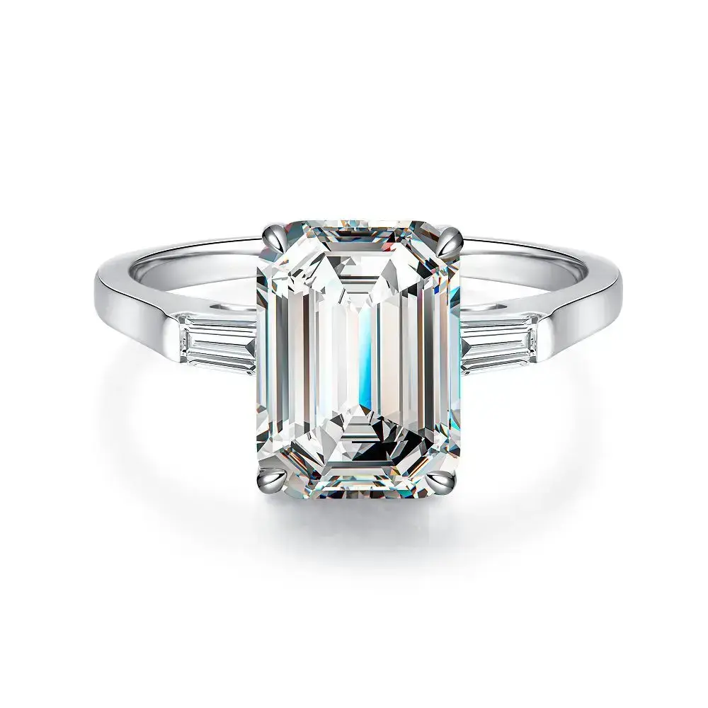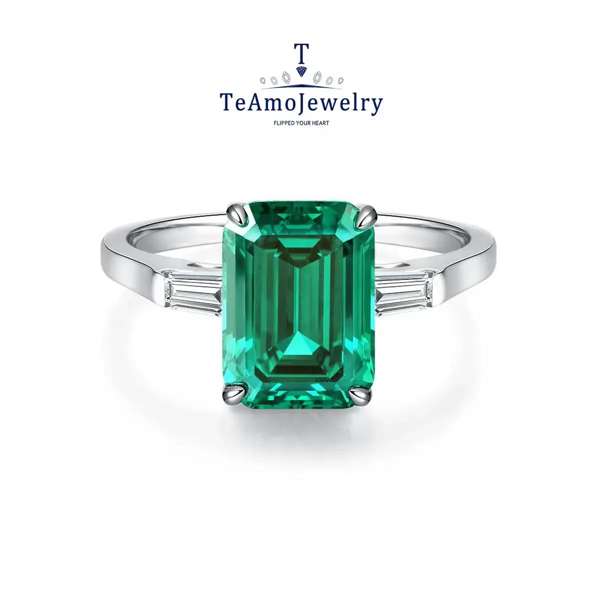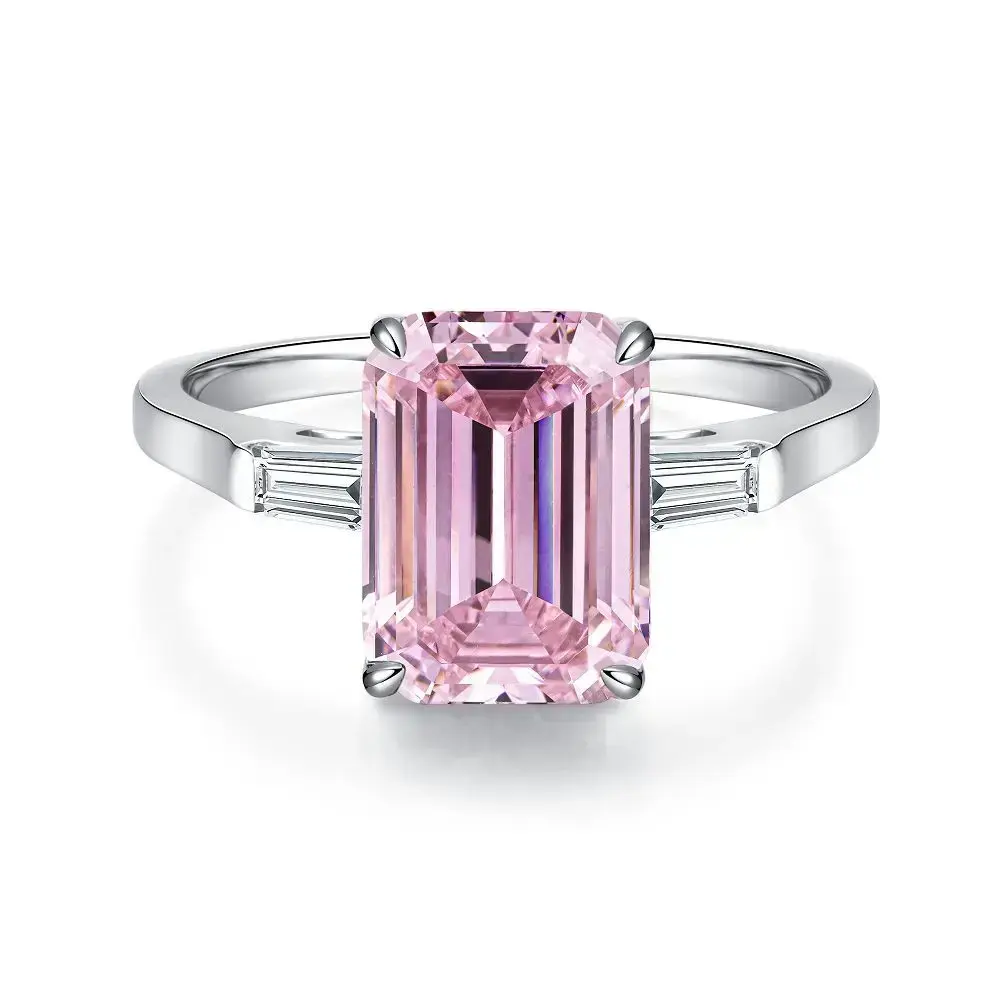 Emerald cut artificial gemstone ring, green/pink/white, uniquely designed, noble and elegant, suitable for ladies wearing glasses