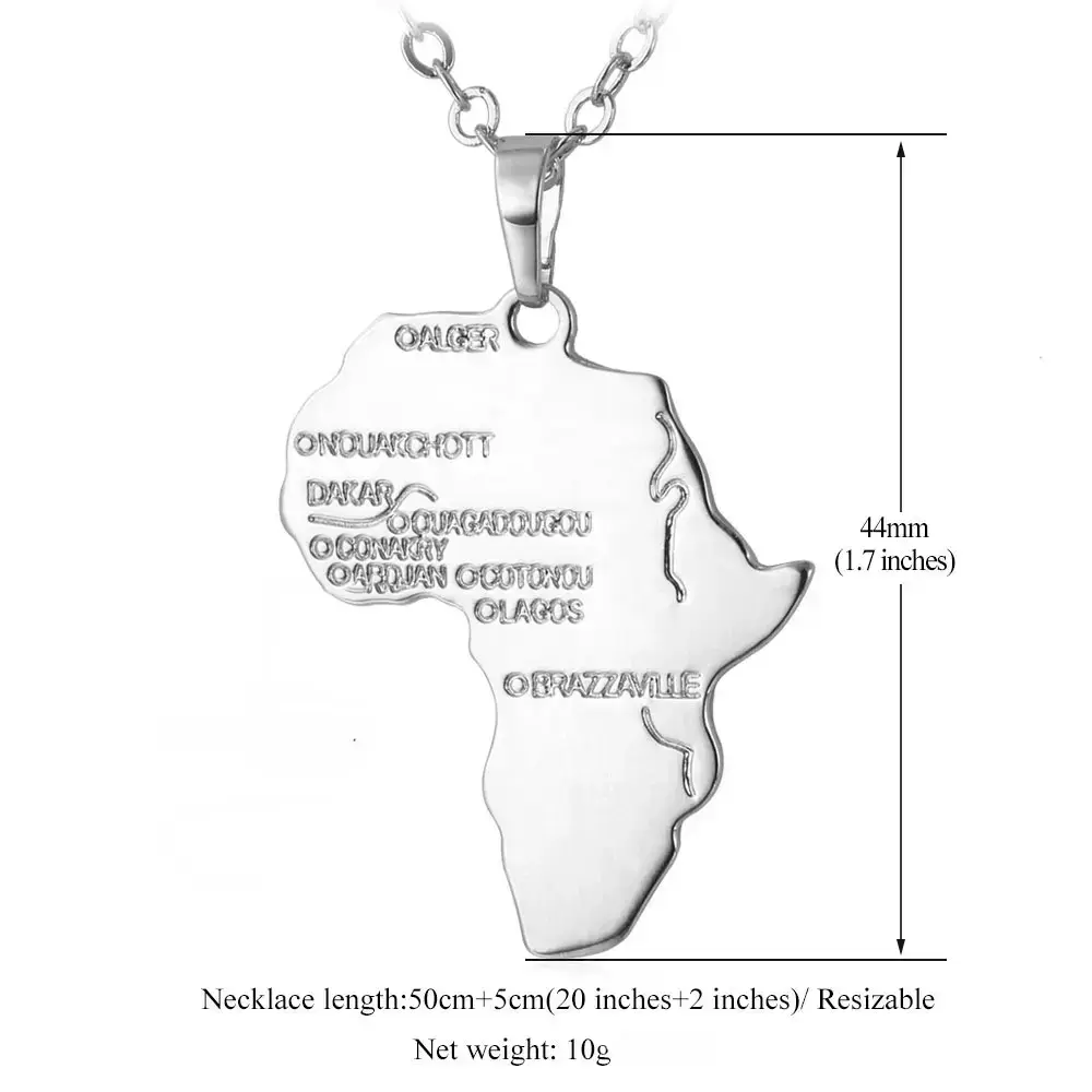 African map pendant necklace for men and women, African pendant necklace, hip-hop jewelry with bracelet
