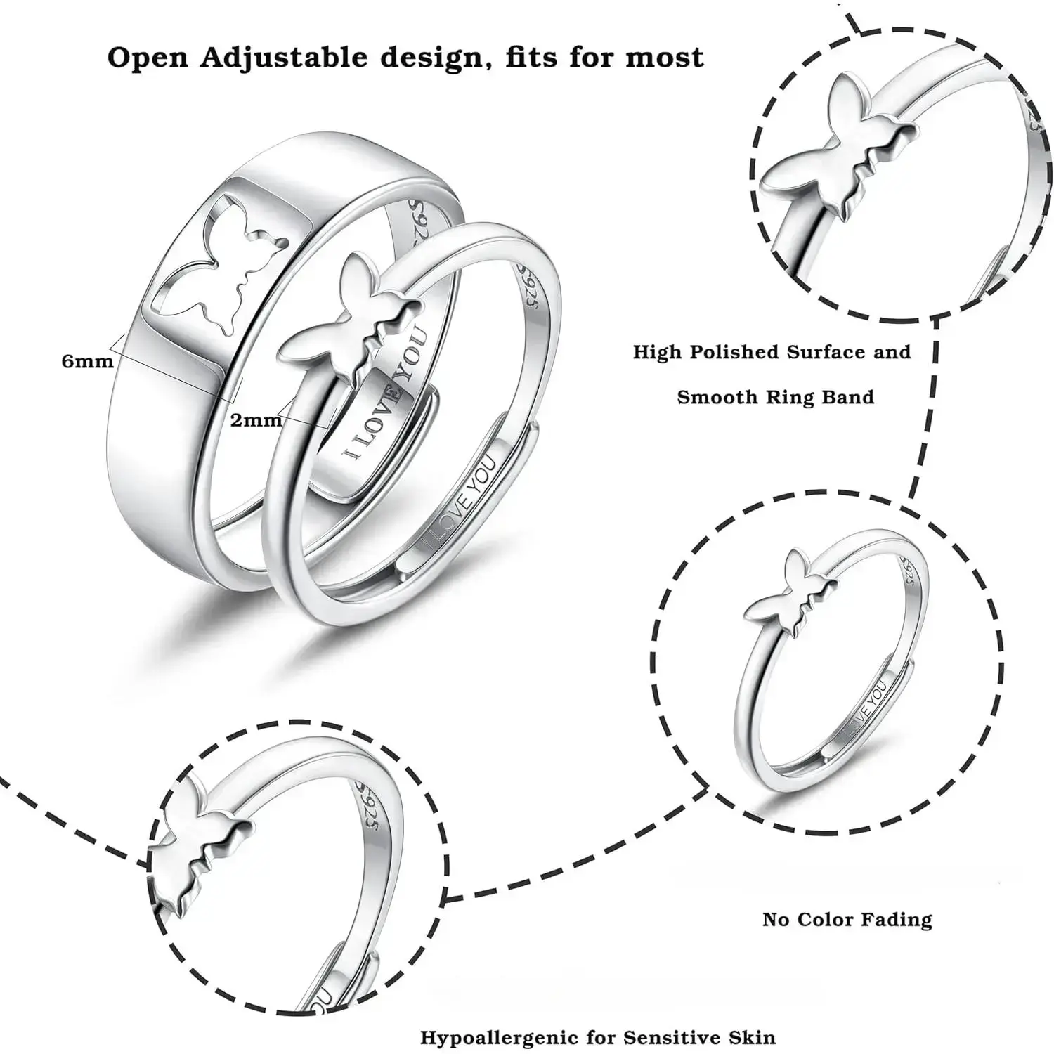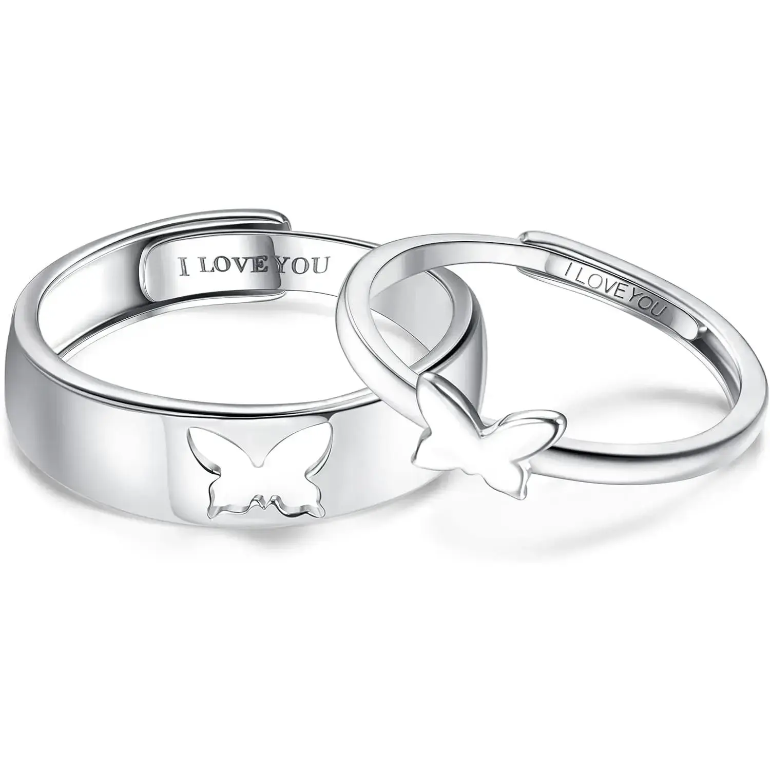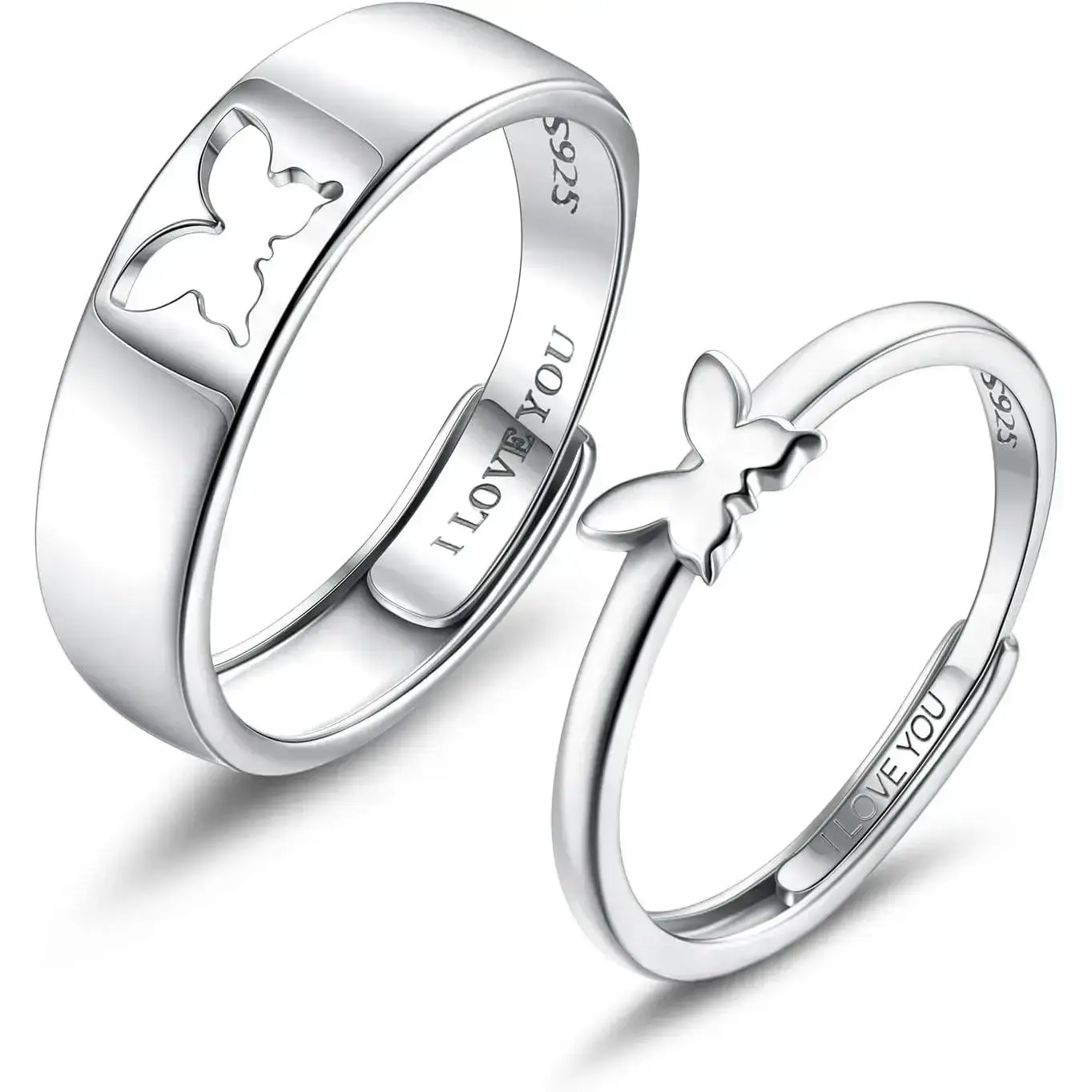 Couple pairing ring 925 sterling silver matching heart-shaped commitment ring I love you engagement ring set for him and her adjustable butterfly pairing ring Valentine's Day gift Spring statement