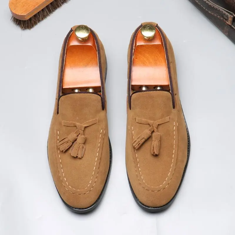 Men'sBritishStyleSlip-OnLoaferswithTassels–CasualLeatherShoes