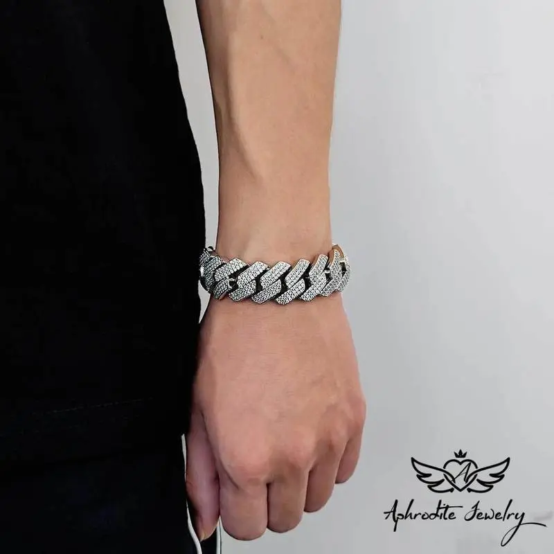 Hip Hop Bracelet 20mm Flip Buckle Three-row Zircon Diamond Cuban Chain
