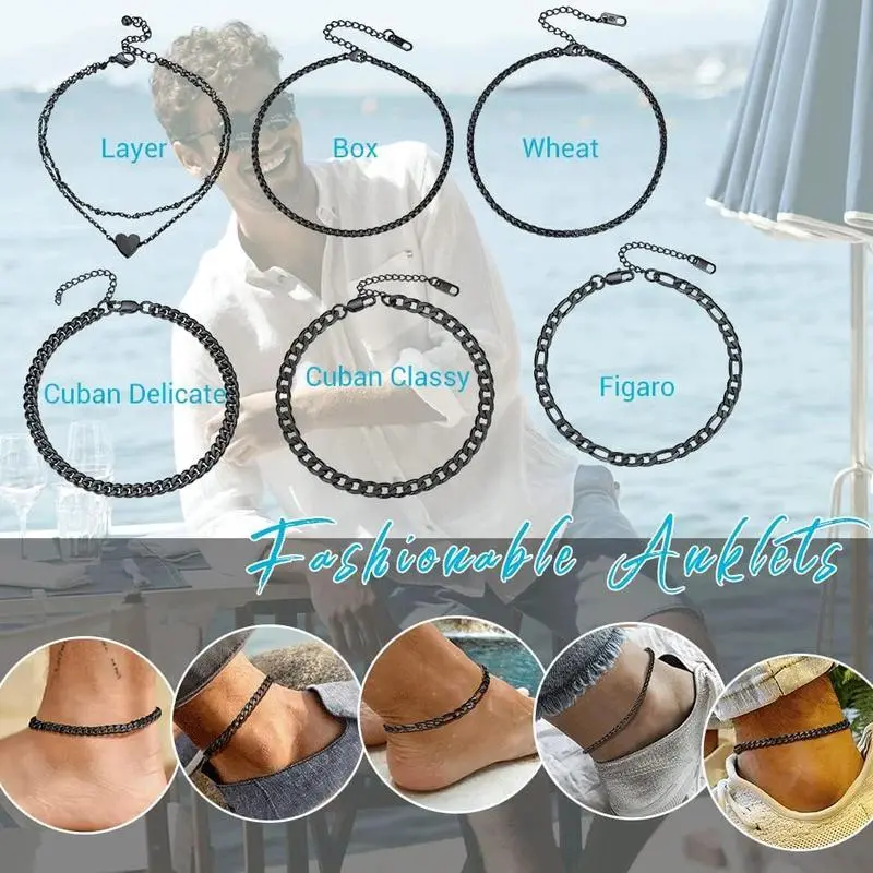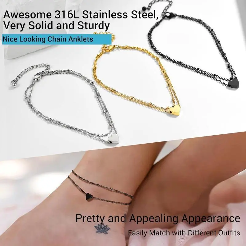 Stainless Steel Chain Anklets for Men Women, Silver/Gold Tone, Ankle Bracelets Hypoallergenic, 8-10.5 Inch Adjustable, Come Box