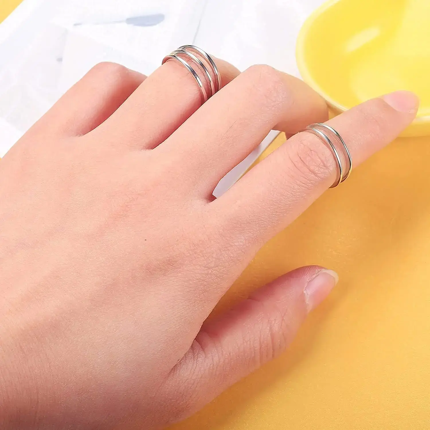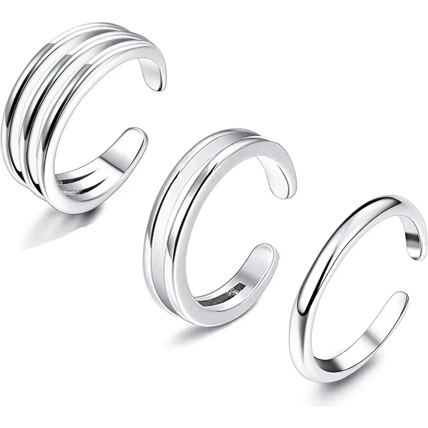 Cute Toe Ring Set In One Order You Will Get 3 Different Styles Of Small Toe Rings, a Band Ring And Two Hollow Design Rings. These Fashion Design Toe Rings Have a Gap In The Back, Making Them Adjustable, And Suitable For All Ladies And All Outfits And Occasions. Toe Rings These Toe Rings Are Made Of High-Quality Copper With a White Finish, With a Polished Shiny Surface. The Classic Cutout Design Never Goes Out Of Style. They Are Safe Enough For Your Sensitive Skin, And Also Smooth And Comfortable To Use. If You Want Your Toe Jewellery To Last Longer, It Is Recommended That You Re-Seal The Foot Ring With Clear Nail Polish. Open Cuff Toe Rings Plating Toe Rings With 3 Sizes,2mm,4mm And 8mm In Width, Open Cuff Toe Ring Design Makes Them Adjustable. The Open Toe Rings Could Be Used As Pinky Rings, Knuckle Rings, Stacking Rings Or Minimalistic Ring Sets, Suits For Young Ladies And Women. All-Round High Polishing Makes The Ring Surface Smoother And More Comfortable To Wear, It Won't Hurt Your Toes. Perfect GiftThe Toe Ring Sandals Is Suitable For Highlighting Yourself On The Beach, On Outings, on Picnics And At Gatherings. Small Rings, Which Is The Best Choice For Yourself For Birthdays, Anniversaries, Holidays, Graduation, Mother’s Day, Thanksgiving, Christmas, And Valentine's Day.