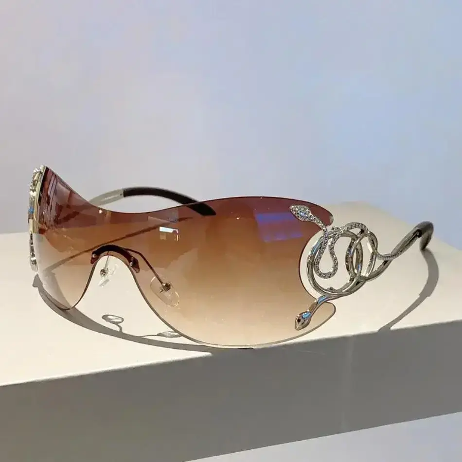 Women's frameless sunglasses, fashionable gradient lenses, outdoor sunshade, fashionable luxury brand design, metal frame glasses, 2026 new model