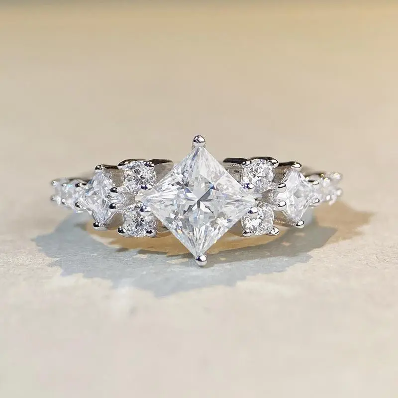 ��#205��1.2ct Princess Cut Real Synthetic Moissantie Ring S925 Sterling Silver
