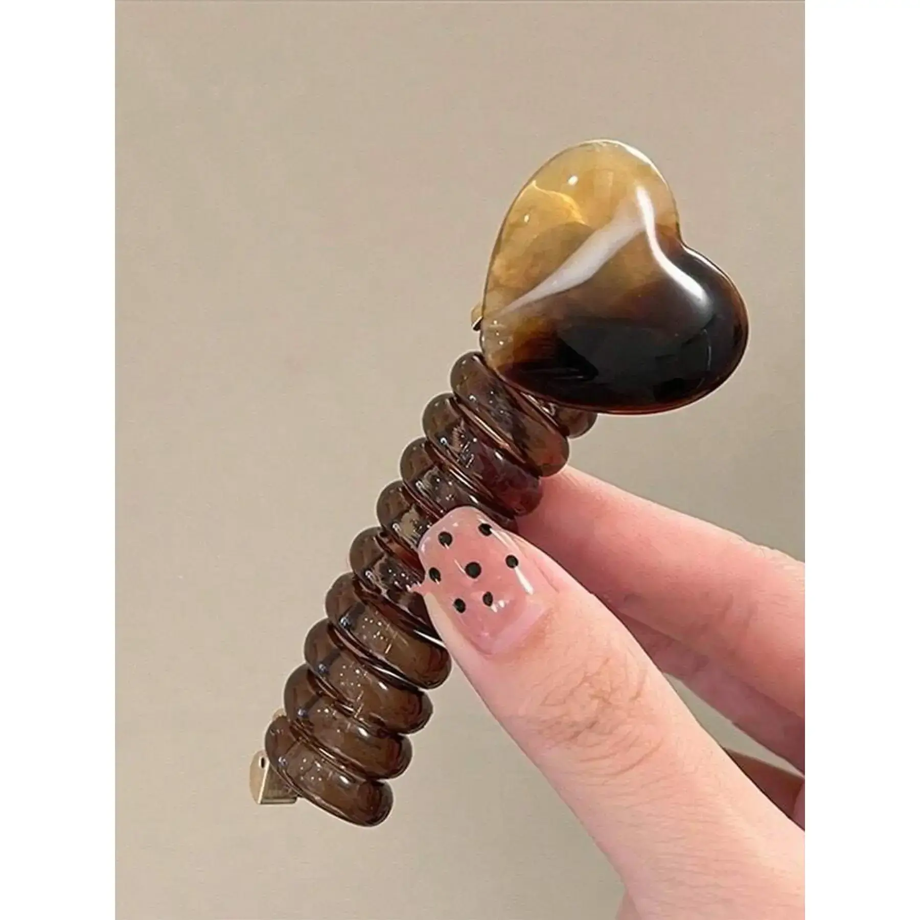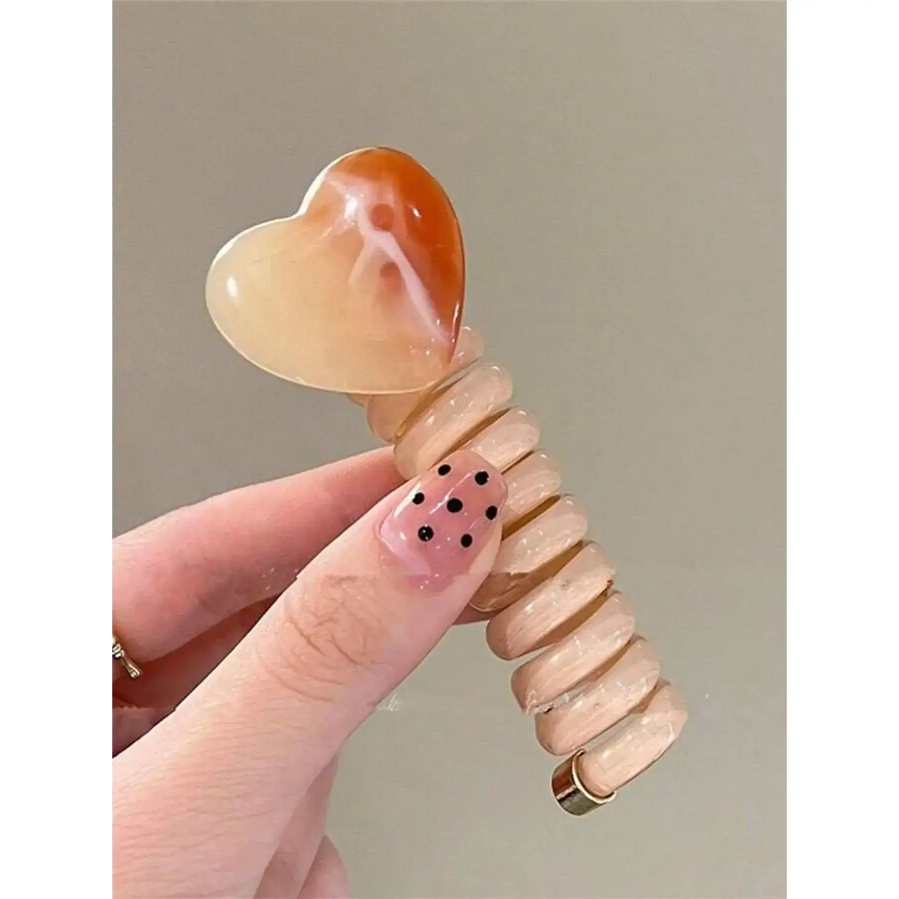 Cute heart-shaped design headband, elegant multi-color metal wire design ponytail clip, suitable for women and girls, fashionable full set hair accessory, suitable for daily decoration of ponytail hairstyle