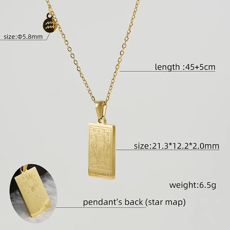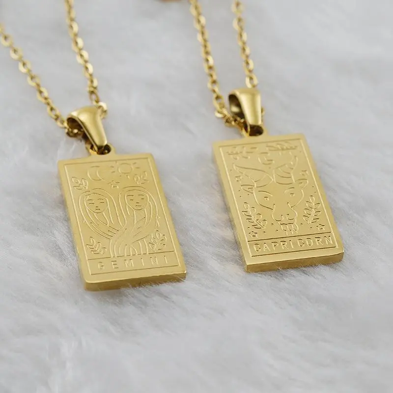 12 Zodiac Signs Necklace For Women yellow Square Stainless Steel 12 Zodiac Signs Titanium Steel Pendant Clavicle Chain Boyfriend Mother Gift Mother's Day Gift