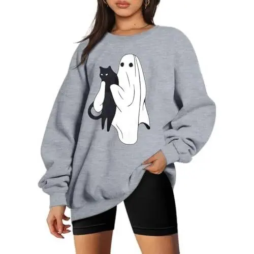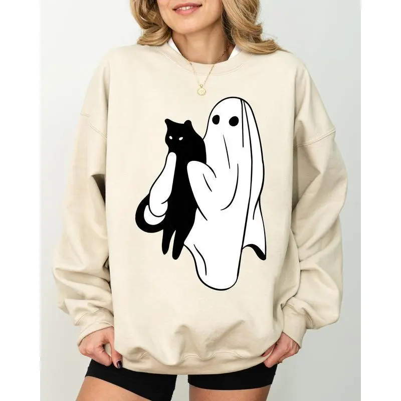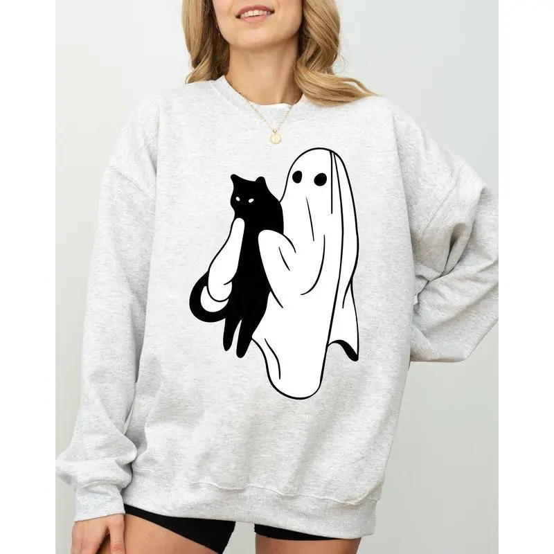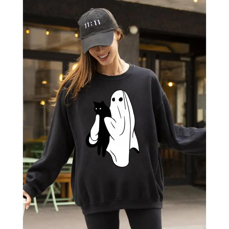 Elevate your Halloween wardrobe with our Ghost and Cat, Skeleton, Witch, Skull, Funny, Spooky, Aesthetic, Meme, Halloween, Costume Sweatshirt. This unique sweatshirt combines comfort with creativity, making it the perfect choice for those who want to express their love for all things spooky and humorous. Whether you're attending a Halloween party, lounging at home, or just want to add a fun twist to your everyday style, this sweatshirt is your go-to apparel. Material: Cotton/Polyester Blend Sizes: S to 2XL Colors: Various options available Care Instructions: Machine washable, tumble dry low for easy maintenance. How to Wear This sweatshirt pairs effortlessly with jeans for a laid-back yet trendy ensemble. Layer it over a t-shirt for an added dimension of style, making it suitable for casual outings or cozy nights in. Make a statement this Halloween season with our Ghost and Cat, Skeleton, Witch, Skull, Funny, Spooky, Aesthetic, Meme, Halloween, Costume Sweatshirt!