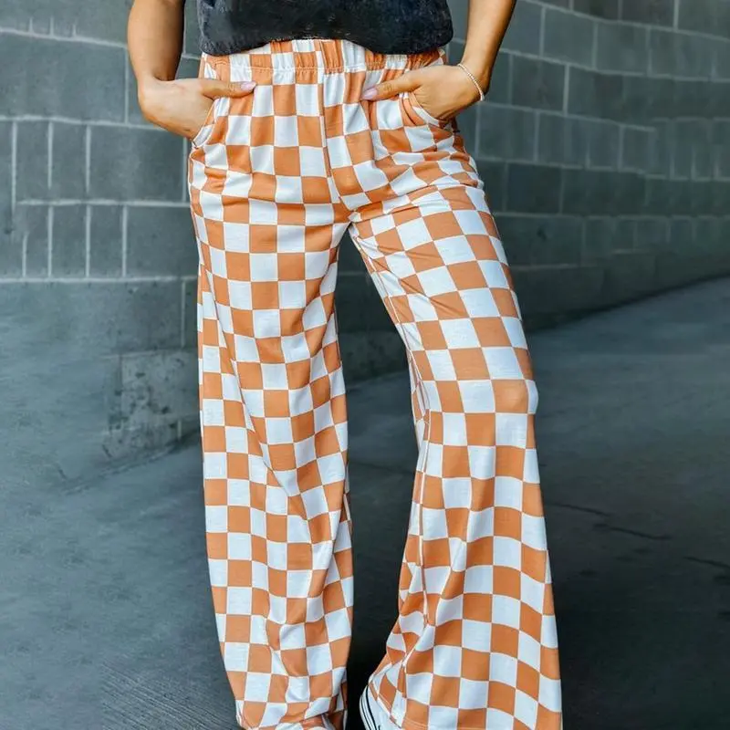 WomensWideLegGinghamPantsY2kCheckerboardElasticWaistLooseTrousersCasualLoungeSweatpantsBottoms