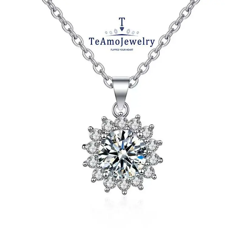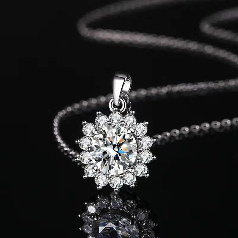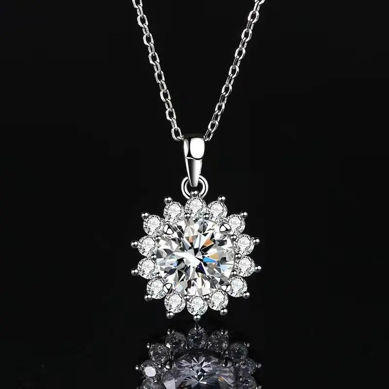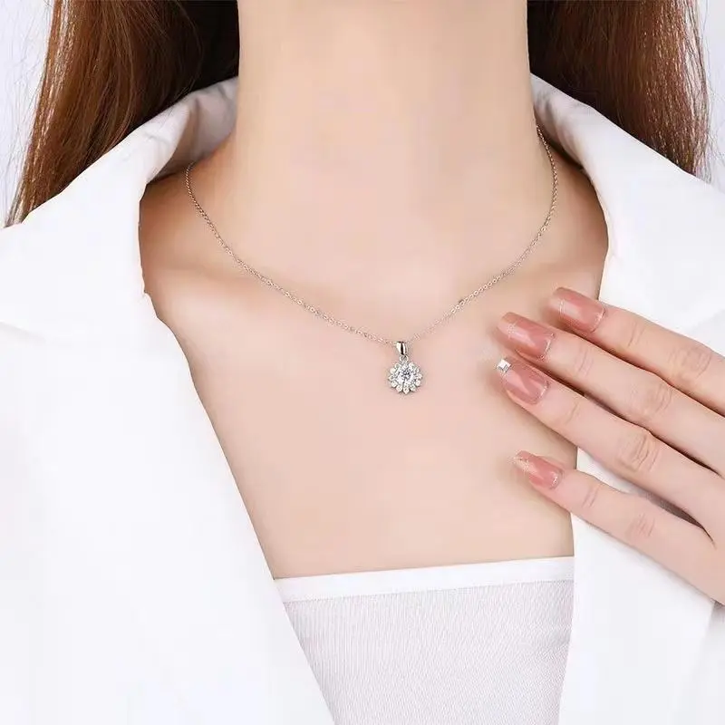 【L-012】S925 Moissanite Necklace, Sunflower Shape Lady's Favorite, Fashion Accessories for Daily Wear Party Holiday, Unique and Elegant Design Gift Jewelry For Girlfriend