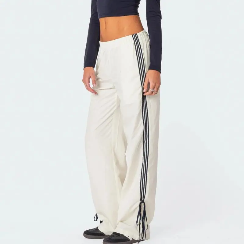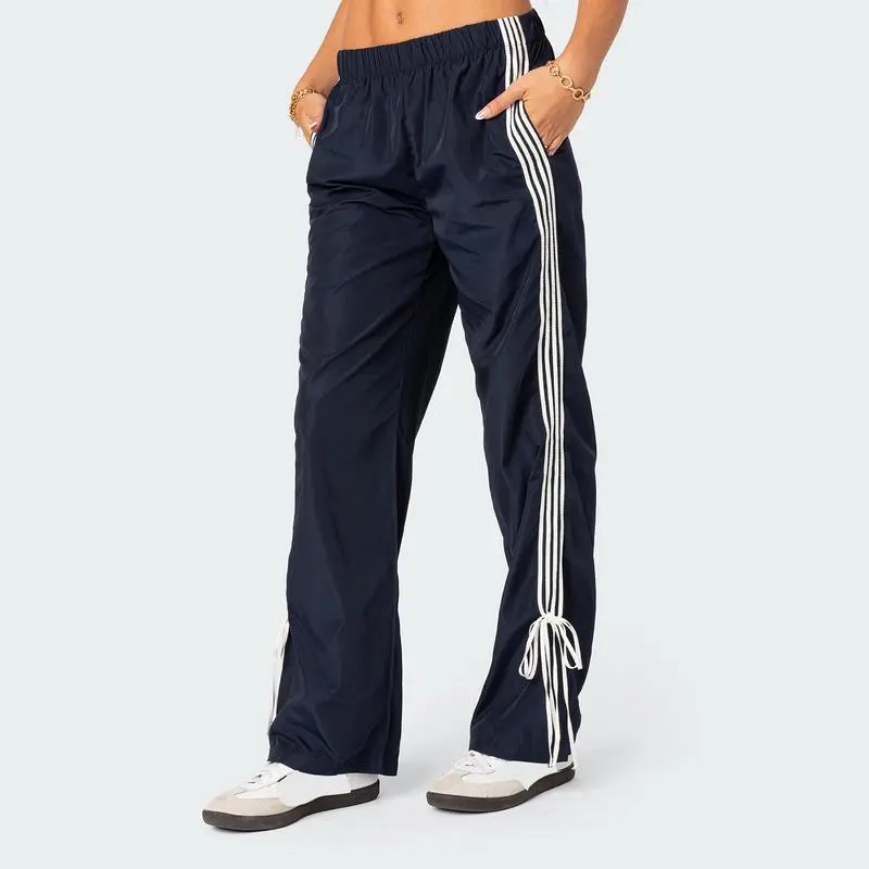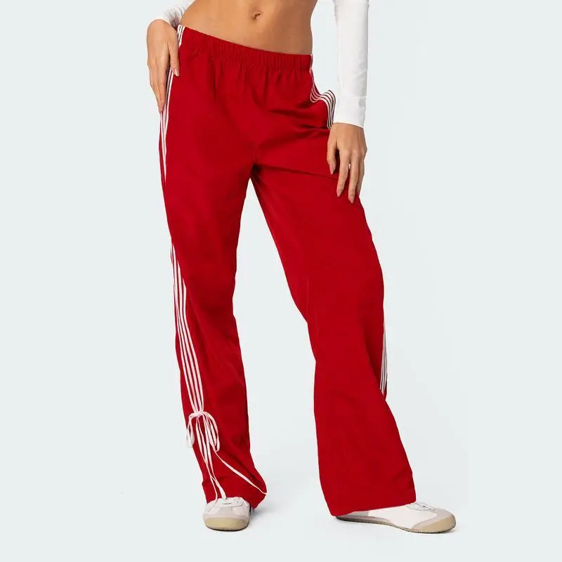 Women'sParachutePantsElasticWaistBaggyWideLegTrackPants80sY2KSideBowTieCargoPantsJoggerSweatpants