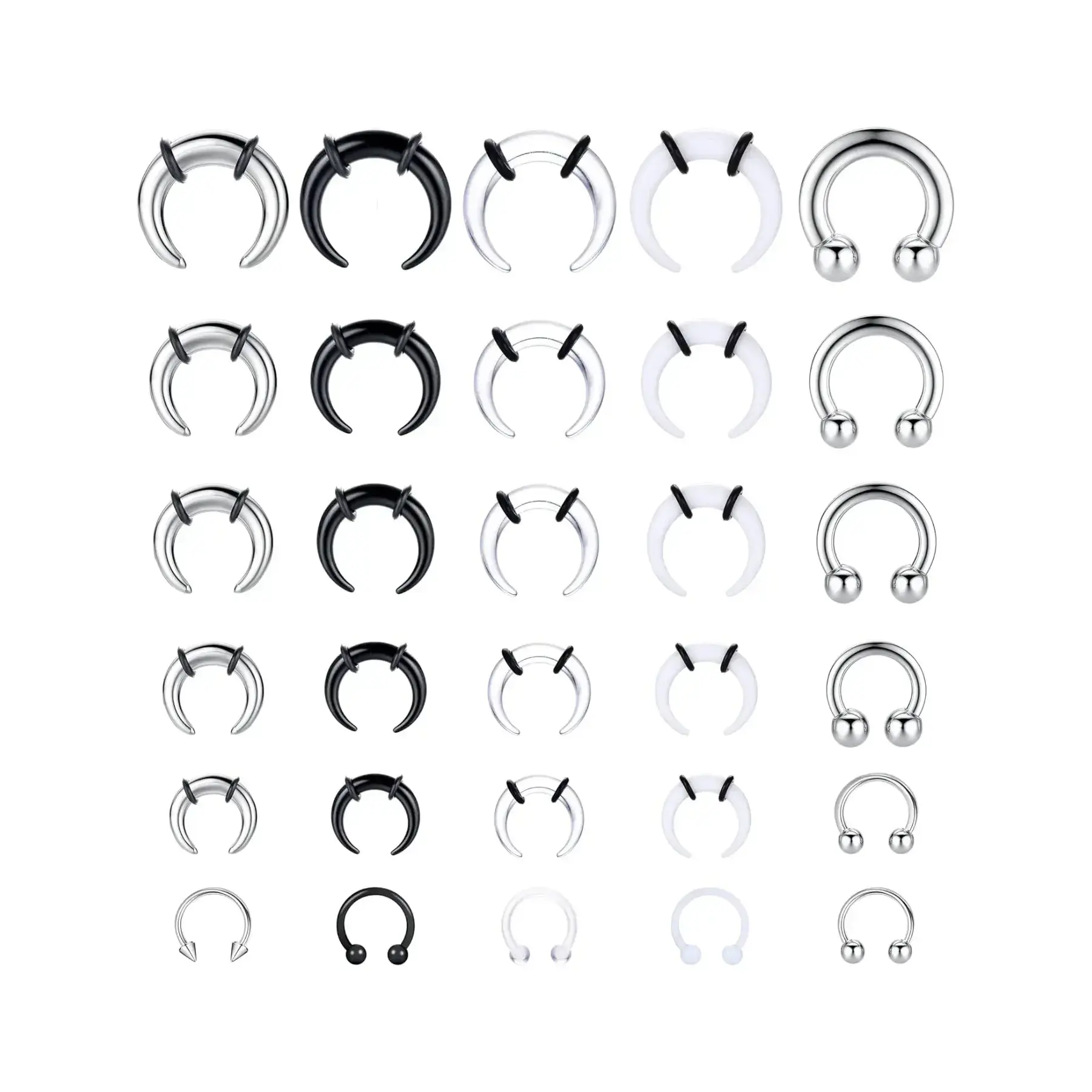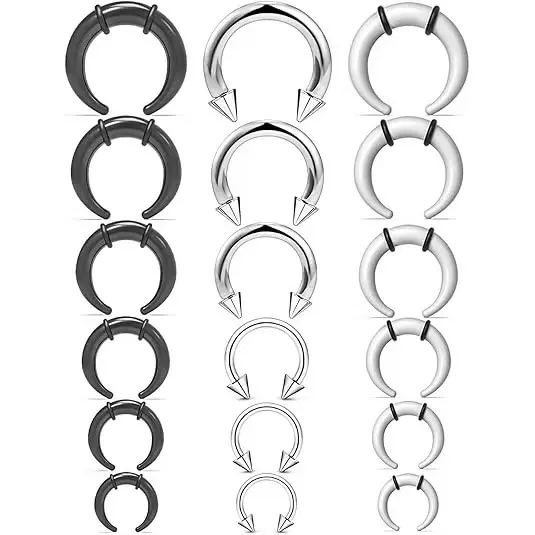 30pcs Acrylic Pincher Tapers and Steel Septum Rings Set, Versatile Nose Piercing Kit with Horseshoe Style for All Seasons, Includes Stretchers and Gauges, Nose Rings Hoops