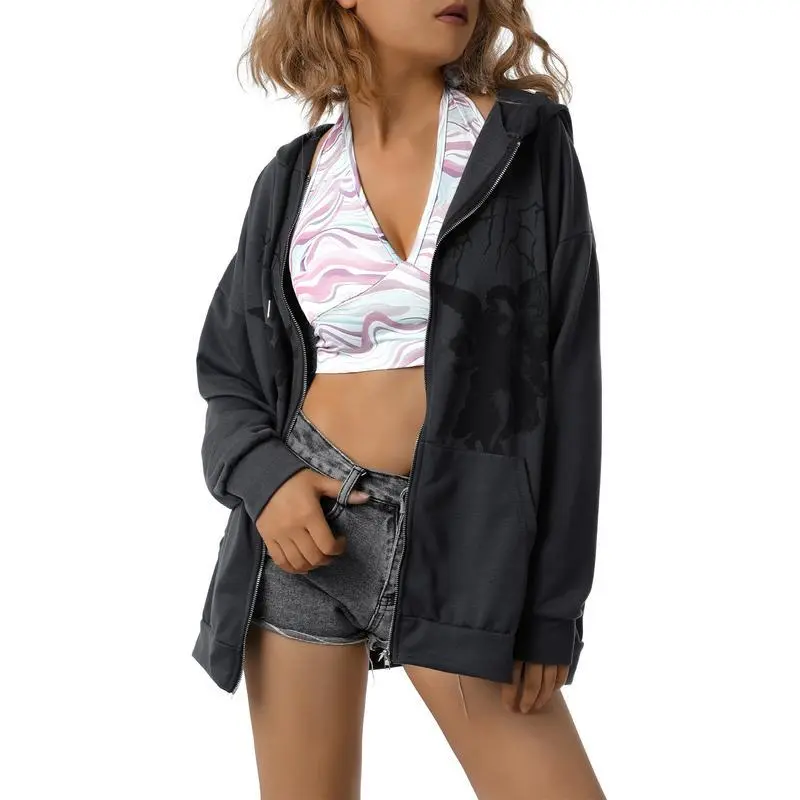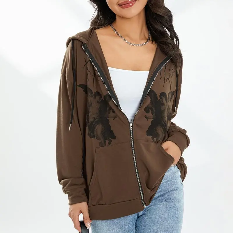 Women'sY2KZipUpHoodieVintageGraphicAestheticSweatshirtPulloverLongSleeveE-Girl90sStreetwearJacket