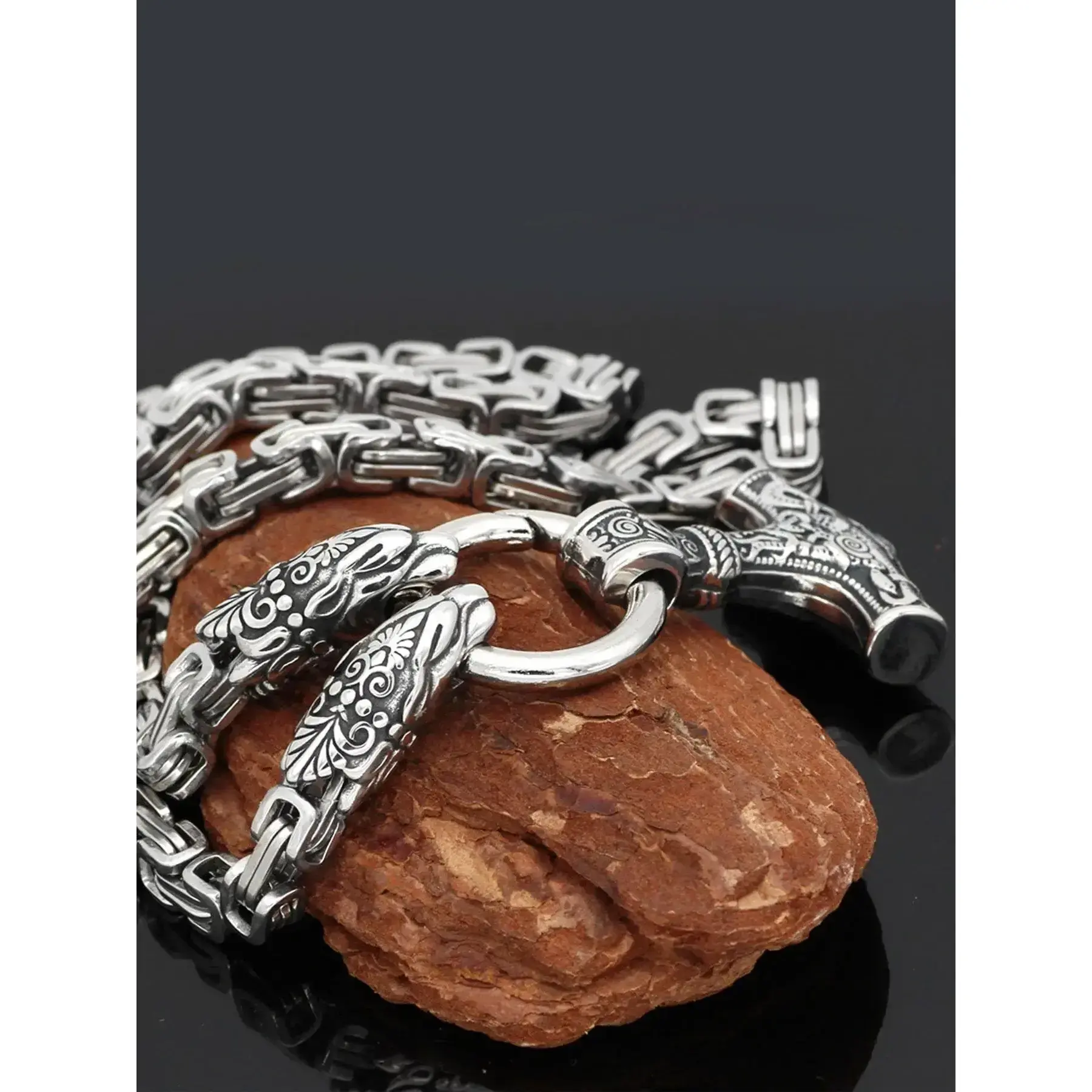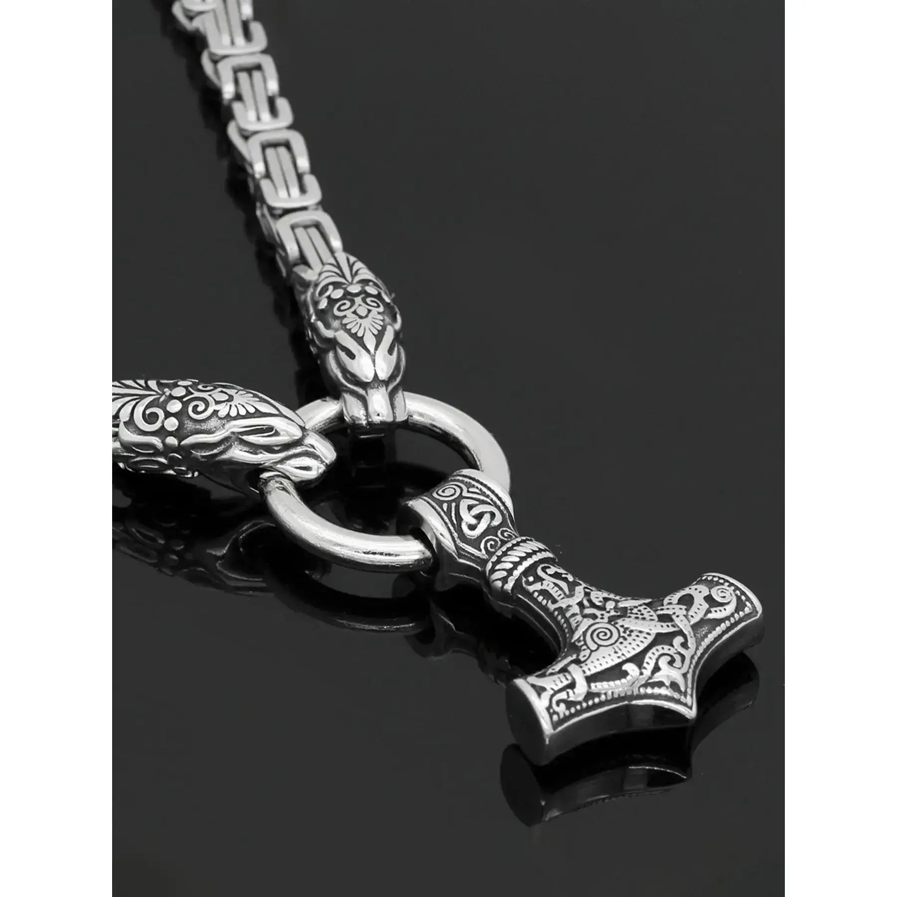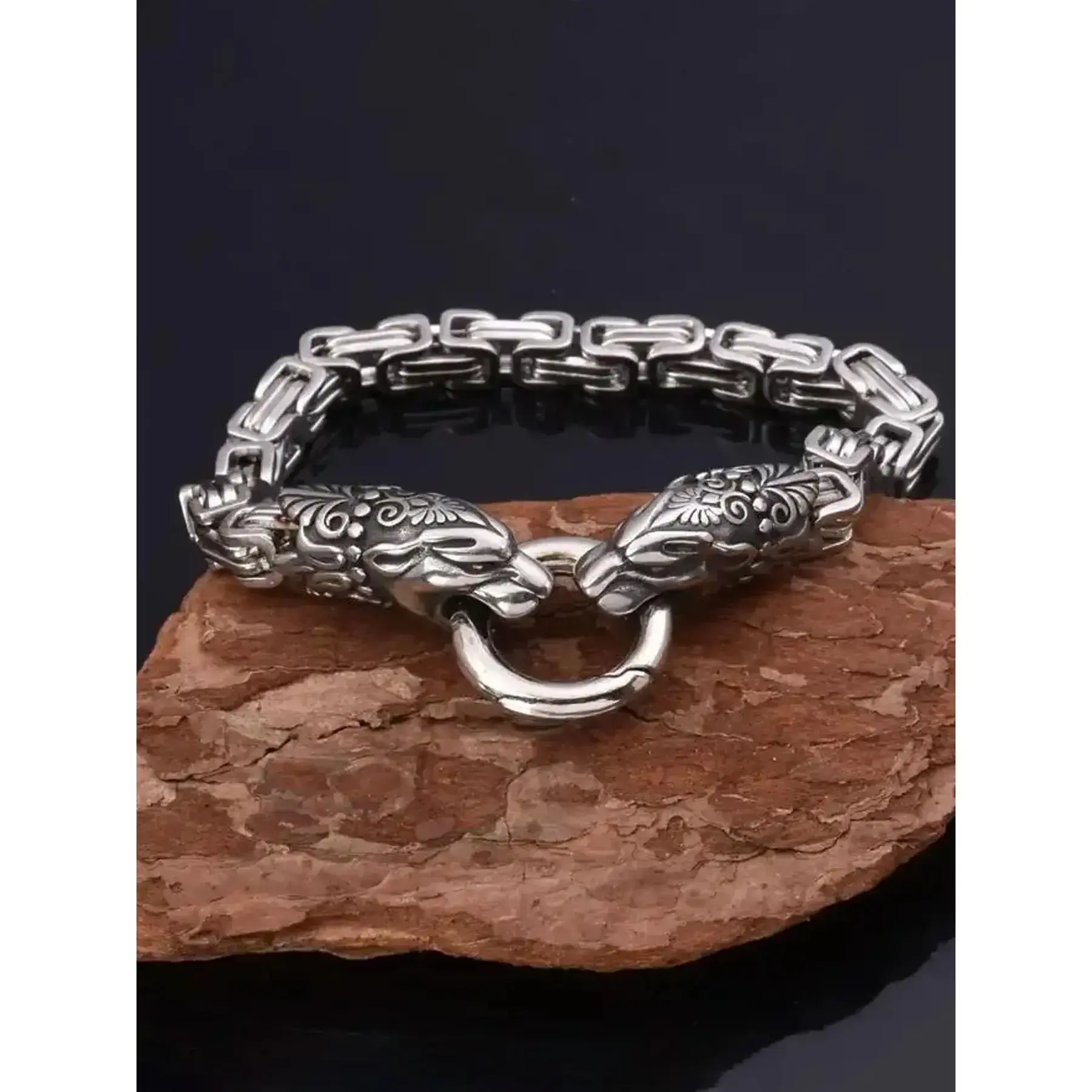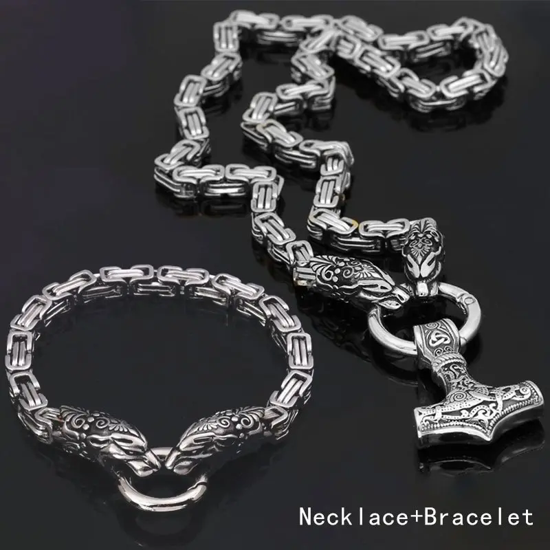 2pcs Vintage Style Fashionable Viking Wolf Head Pendant Necklace & Bracelet Set, Punk Jewelry Set for Party for Both Men & Women