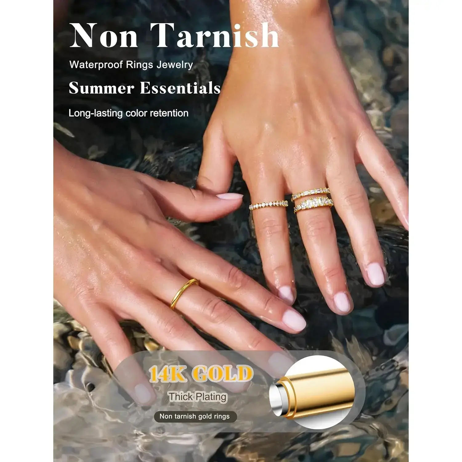 PAVOI 14K Gold Plated Rings with Cubic Zirconia Love - 4mm Stackable for Women - Gold Rings