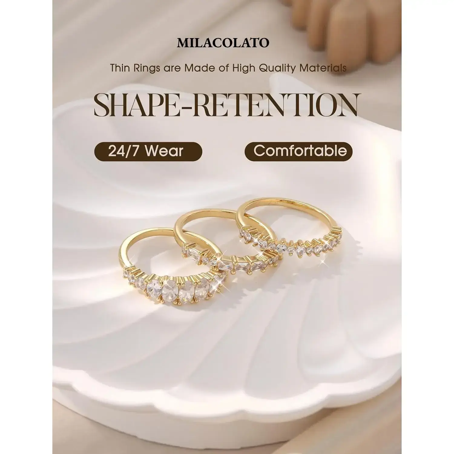 PAVOI 18K Gold Plated Open Eternity Ring - Cubic Zirconia Stacking Bands for Women - Dainty Stackable Rings for Women