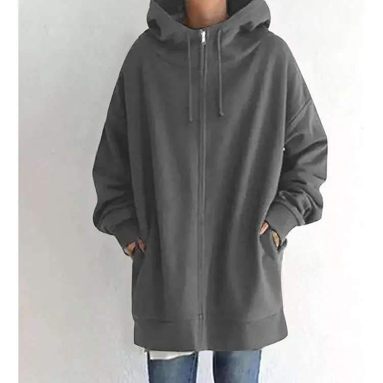 Women's Zip Up Hoodies Oversized Long Sleeve Fall Hooded Sweatshirts Casual Long Fleece Jacket Coats with Pockets
