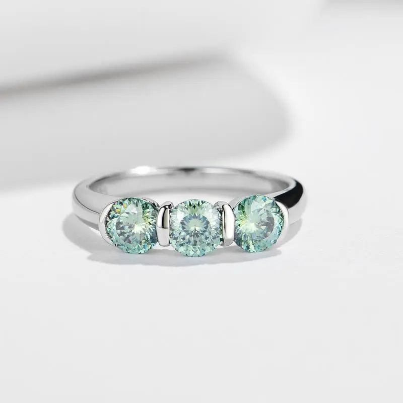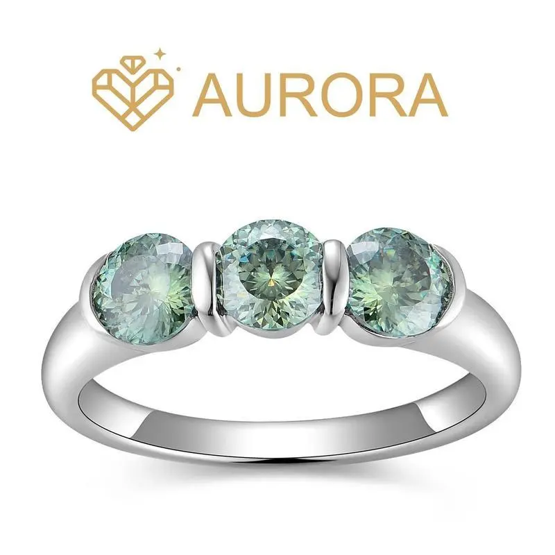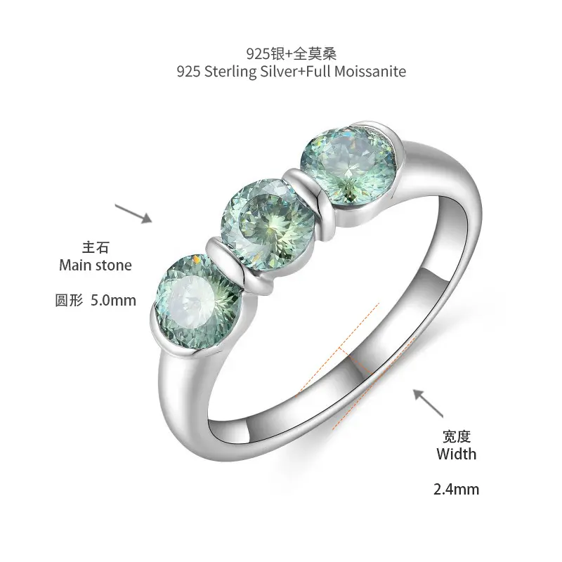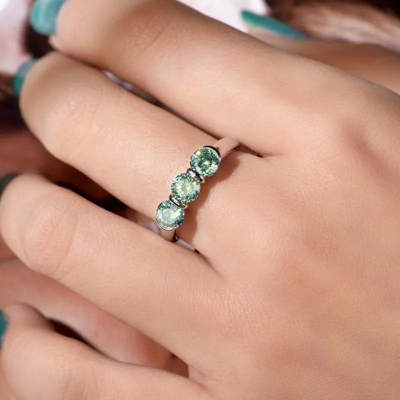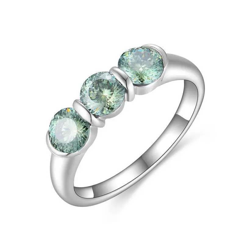 ��#104 Avocado��Full Moissanite main stone and side stone rings 925 sterling silver gift senior Anniversary Jewelry Synthetic Moissanite