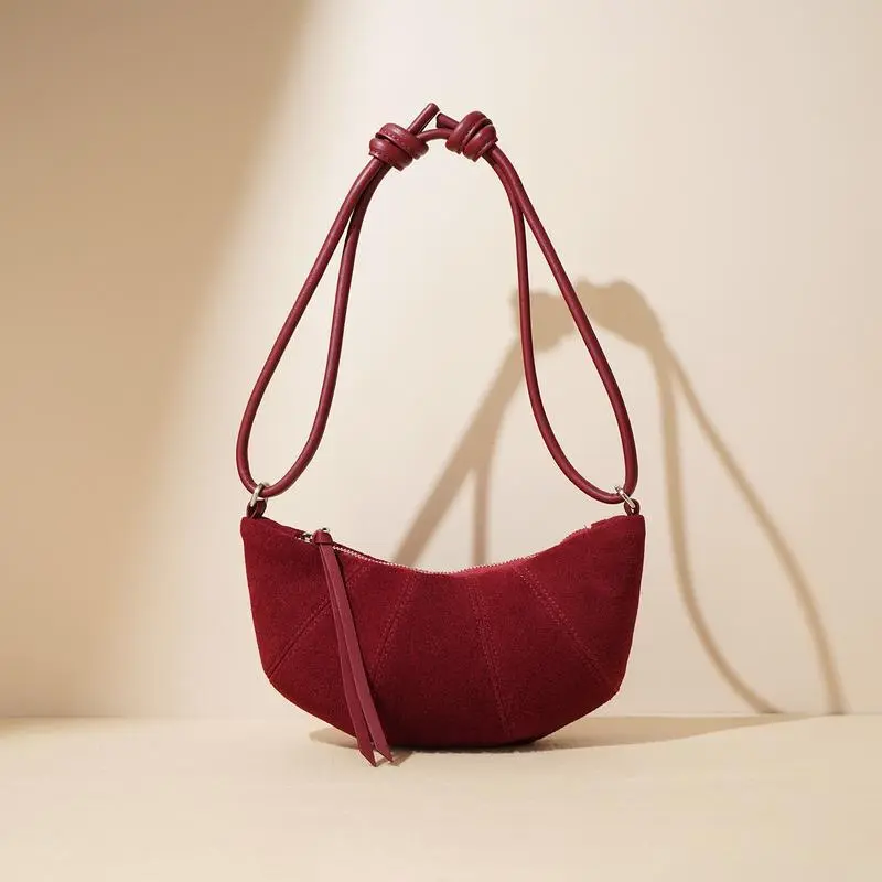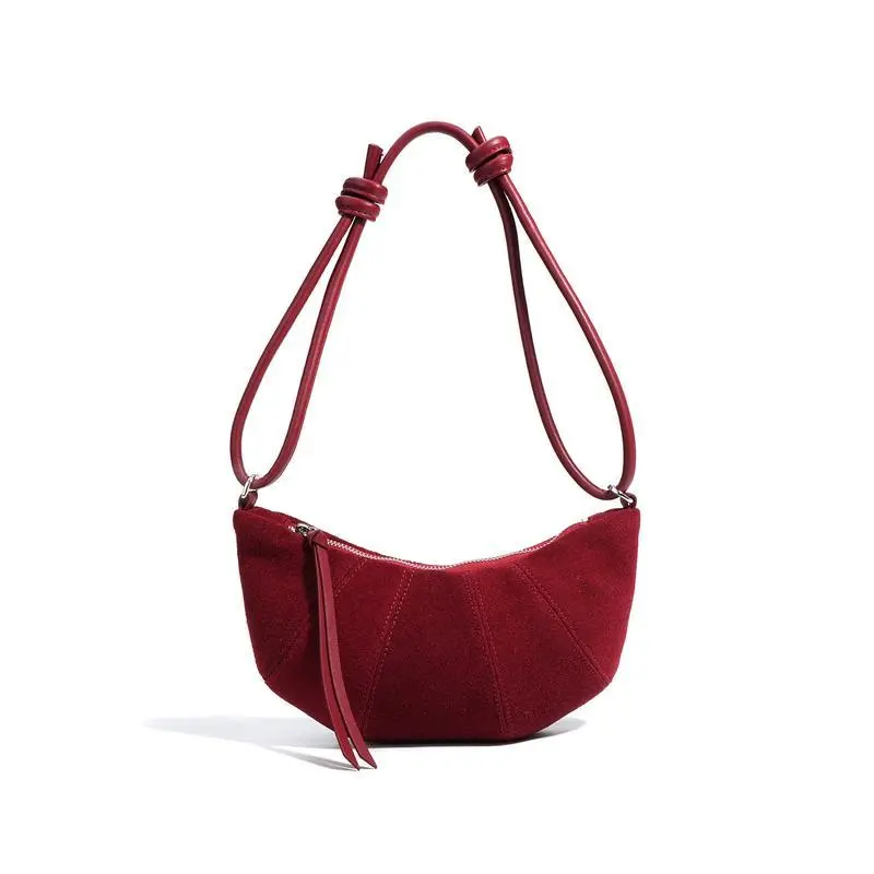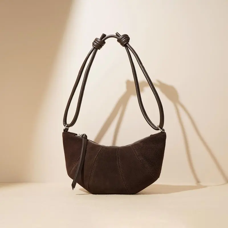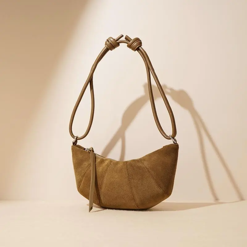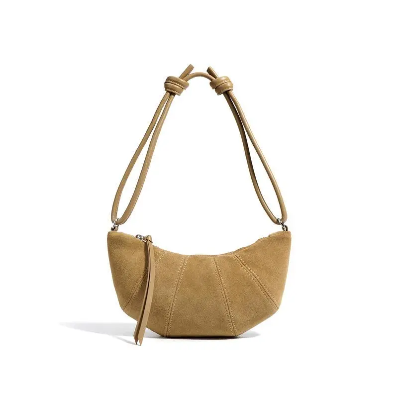 [Genuine leather] F14-New Maillard croissant bag high-end autumn niche underarm dumpling bag versatile crossbody bag frosted cowhide