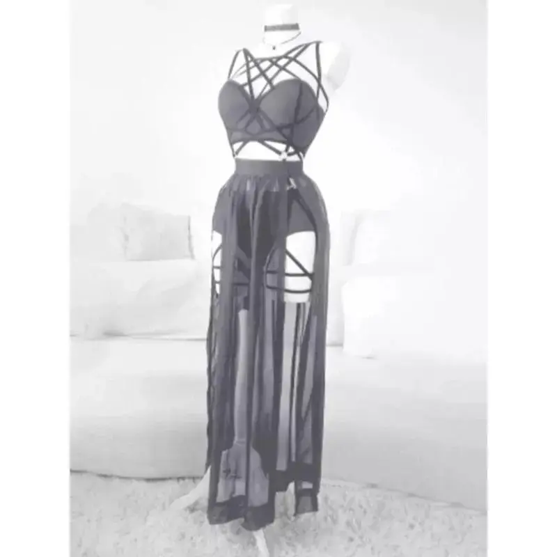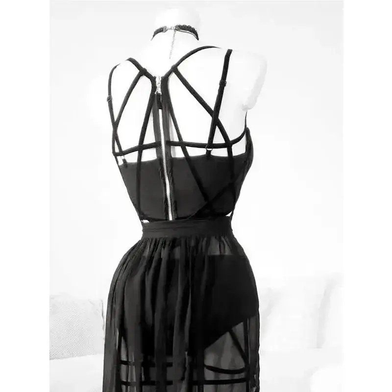AltGoth Gothic Nightclub Sexy Skirt Set Women See Through Mesh Backless Crop Tops Emo Alt Punk High Waist Underpants Skirt 3pcs