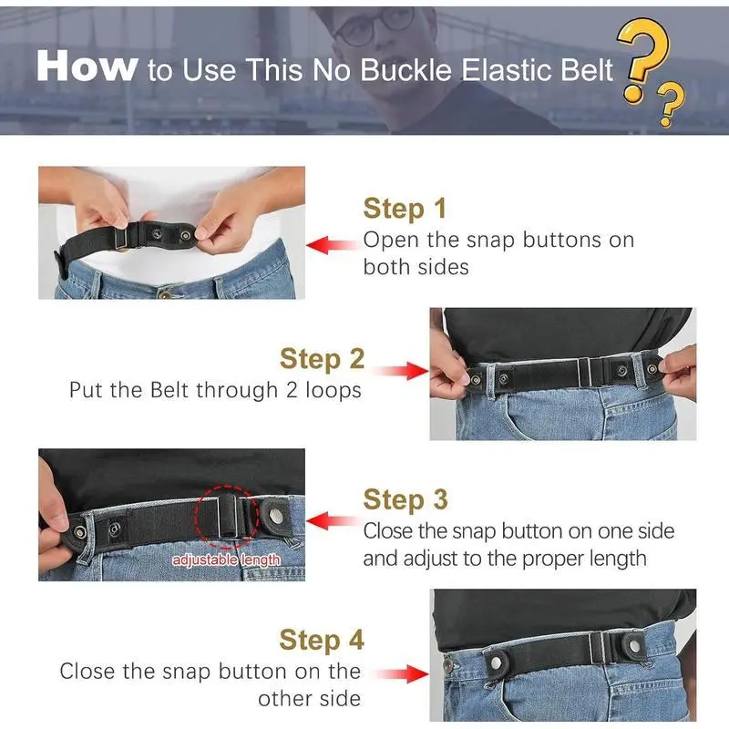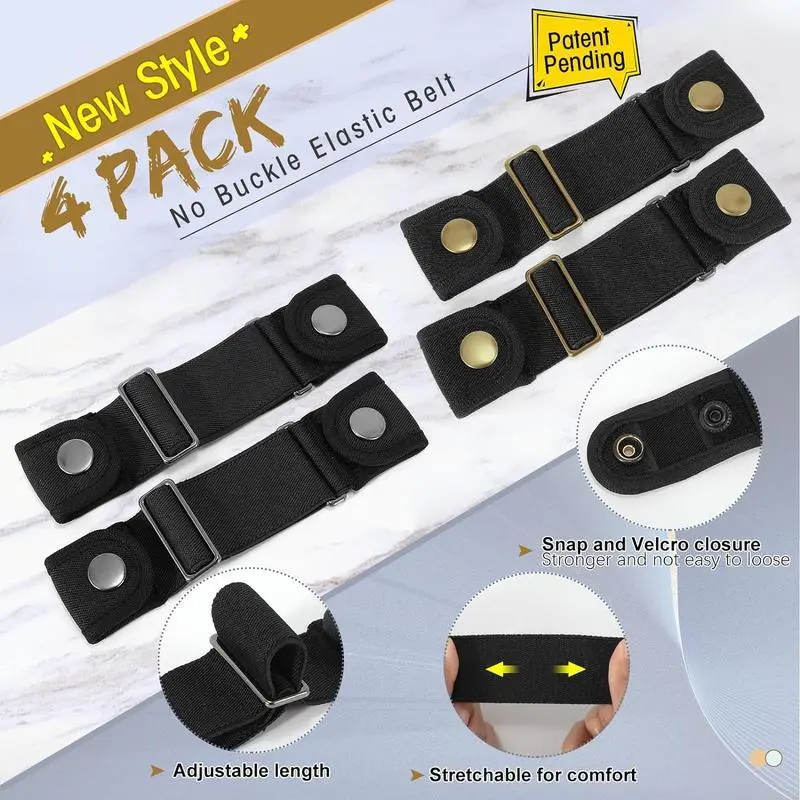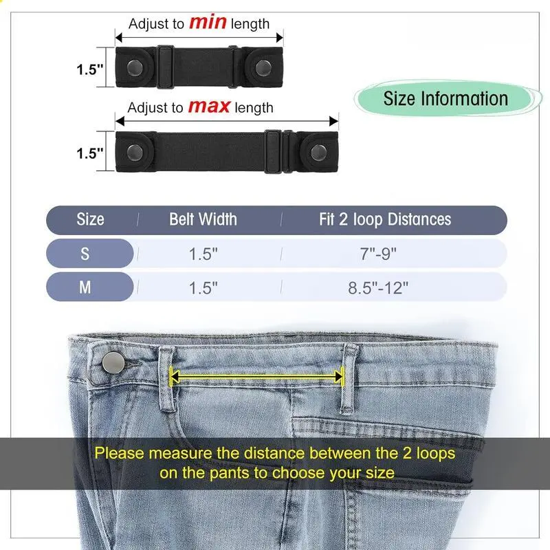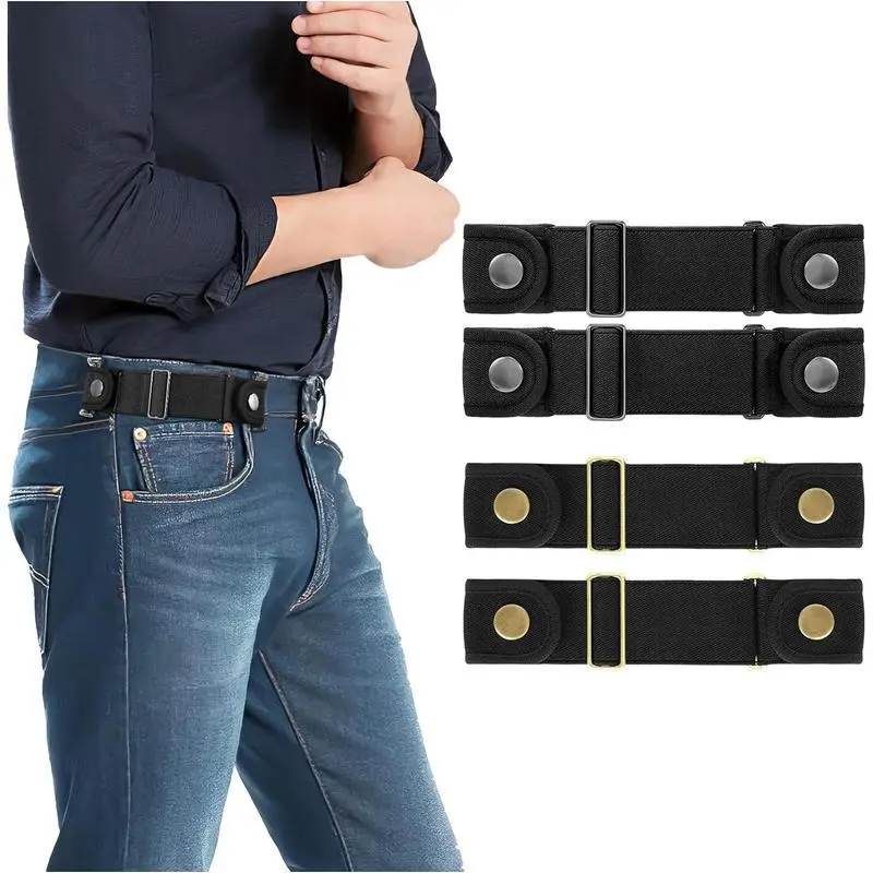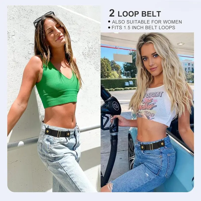 2 Pack No Buckle Belts for Men Women Side Belt Elastic Stretch Adjustable Invisible Belt Fits 1.5 Inch Belt Loops