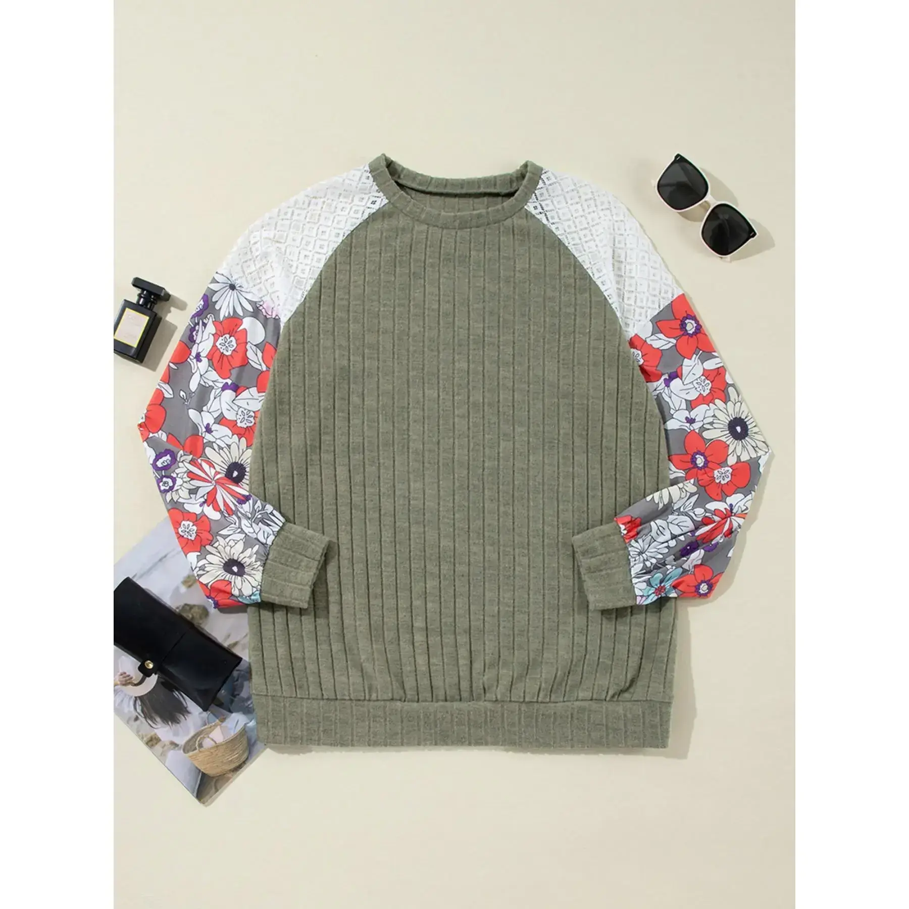 Women's Floral Print Pullover Sweater, Casual Long Sleeve Jumper for Spring & Fall, Fashion Women's Knitwear for Daily Wear