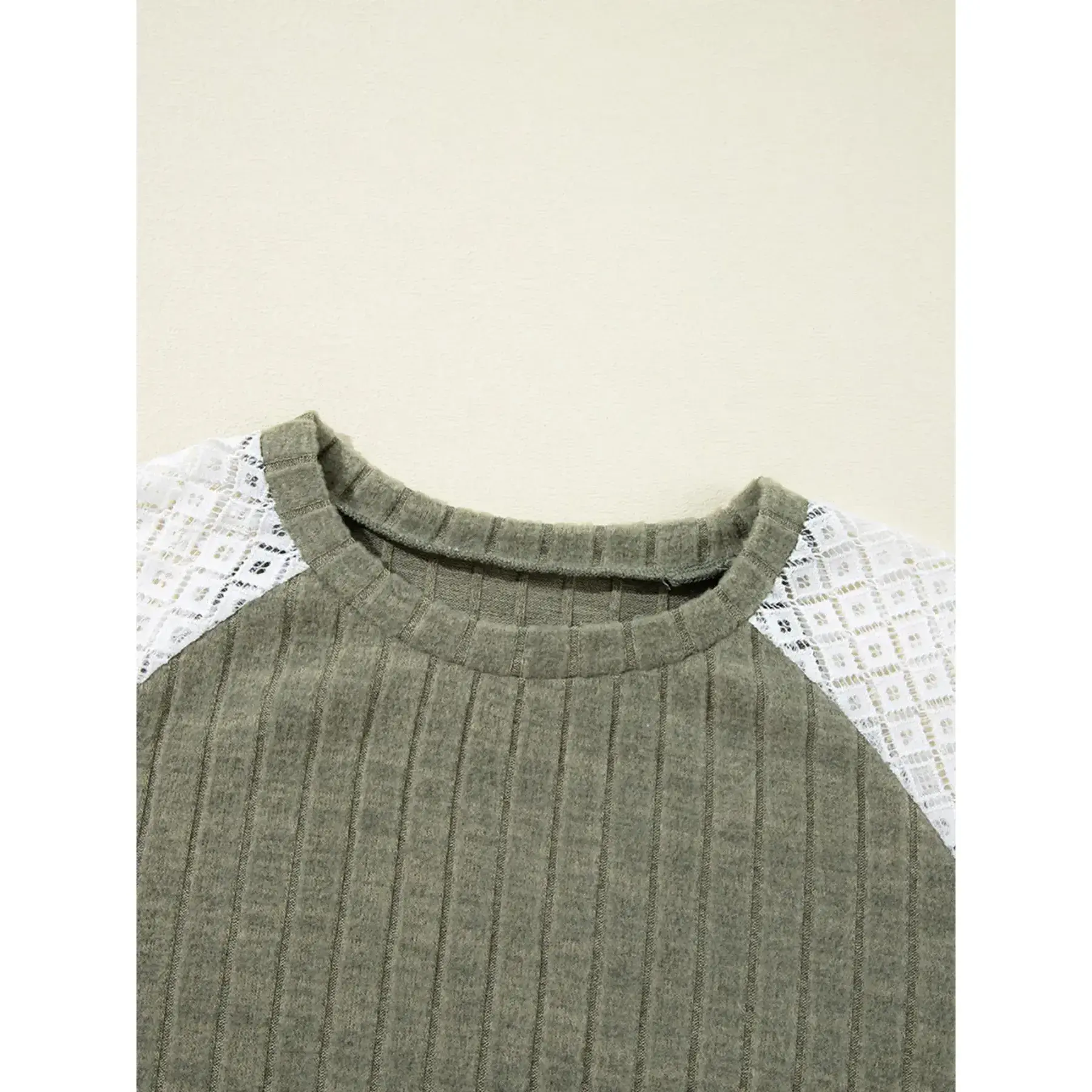 Tanming Womens Short Sleeve Sweater Round Neck Ruffled Hem Knit Crochet Pullover Casual Top Blouse Springfresh Summer Outfit