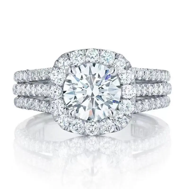 Hot new fashion rings luxurious engagement ring with small gemstone women's luxury European and American gemstone ring