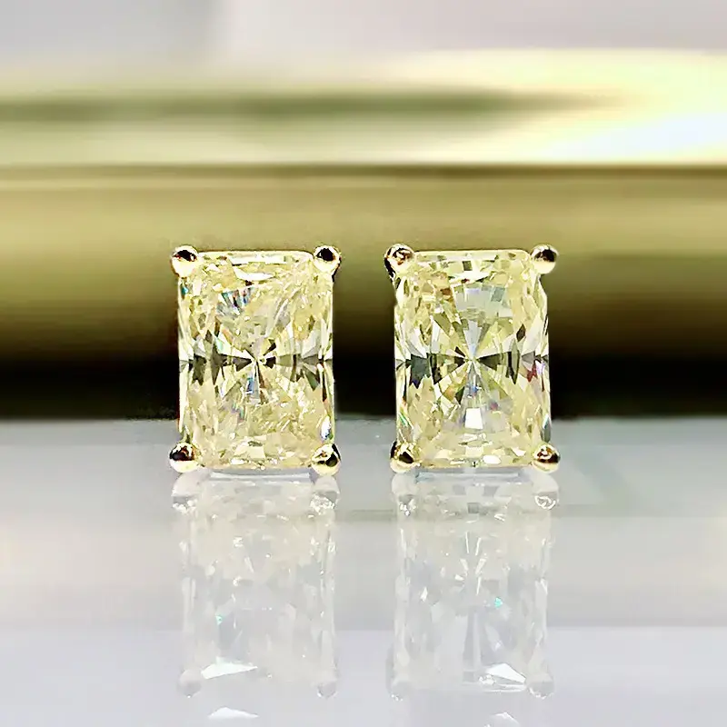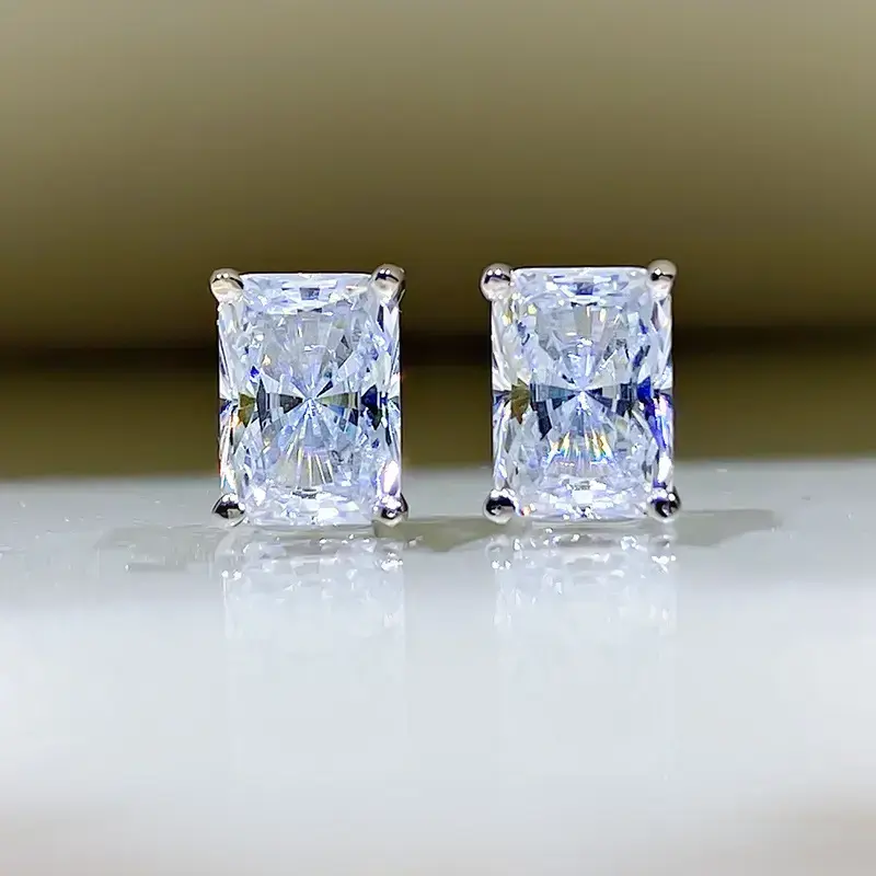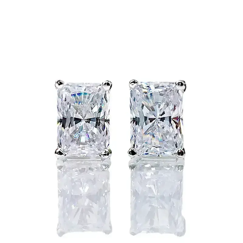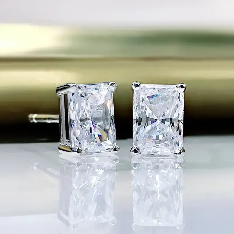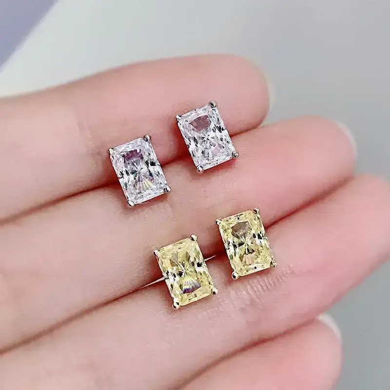 2024 New White gemstone 1 carat imitation gemstone rectangular stud earrings Original design simple oversized stud earrings