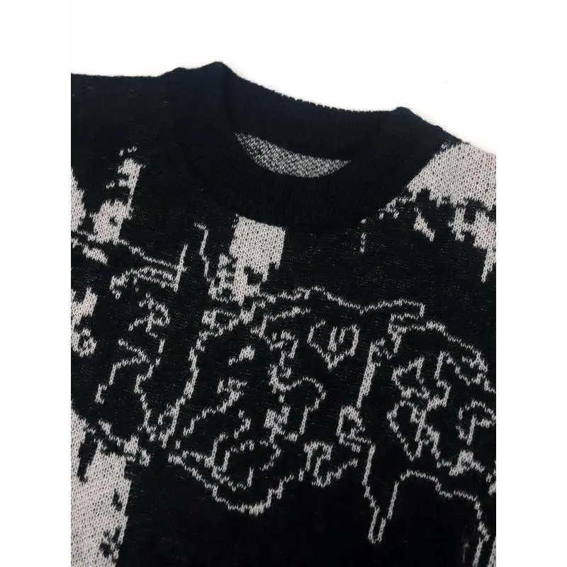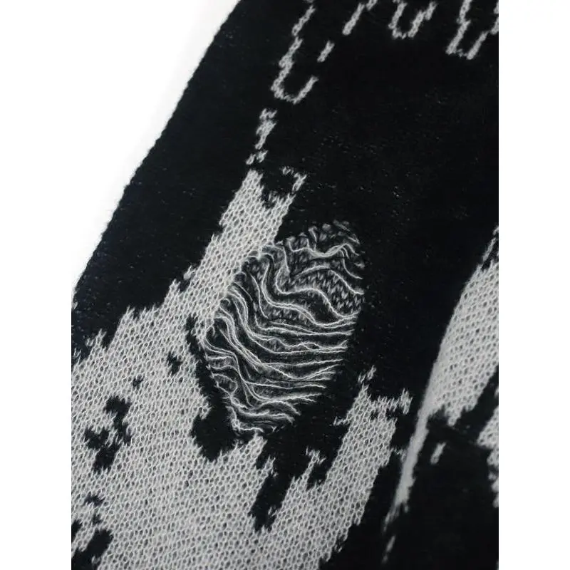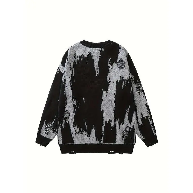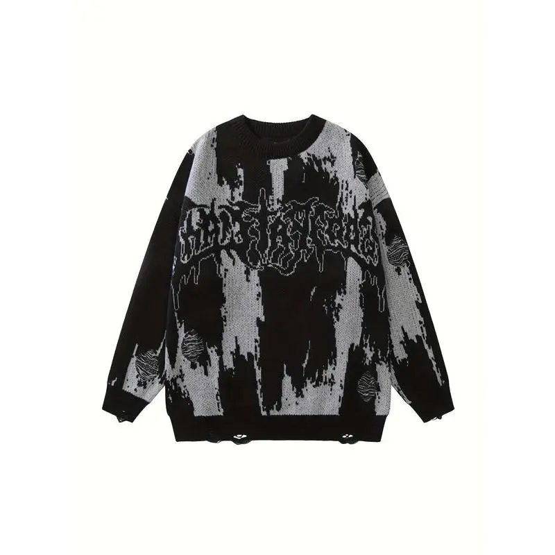 Women's Colorblock & Letter Print Ripped Round Neck Sweater, Casual Drop Shoulder Long Sleeve Jumper, Ladies Knitwear for Fall & Winter Daily Wear